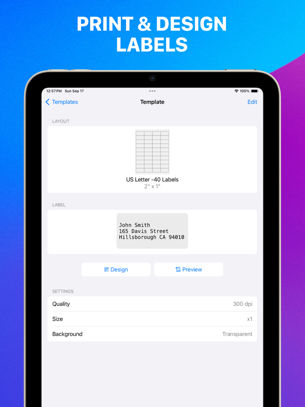 • Design and print barcode labels using most standard shaped adhesive sheets (A4, US Letter and Rolls).