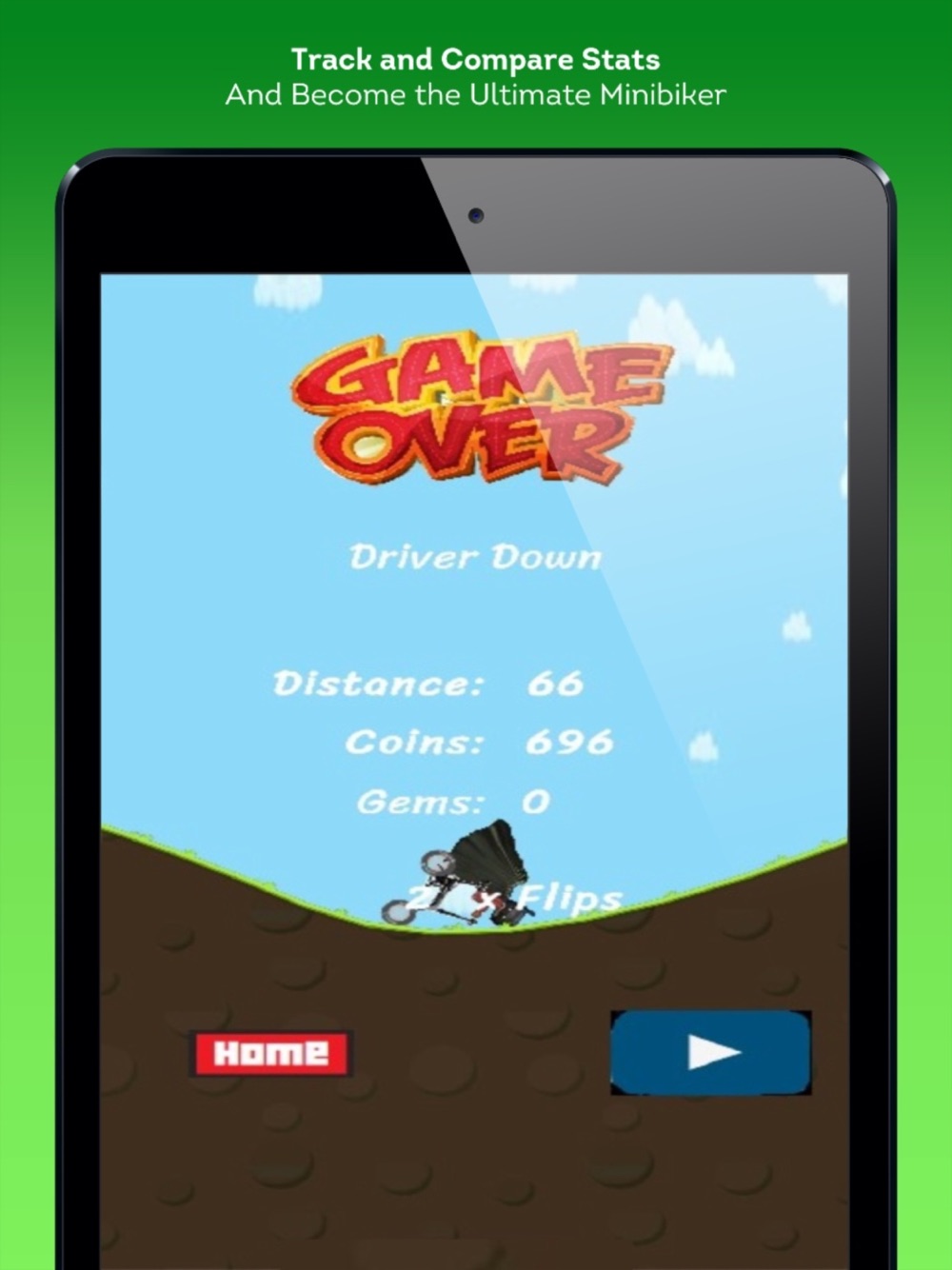 Hop on your miniature bike and take it for a spin through the beautiful and imaginative world of Minibike. Upgrade your bike to better traverse a changing terrain while performing increasingly impressive stunts, and unlock new bikes, characters, and abilities as you progress through distance-based levels.