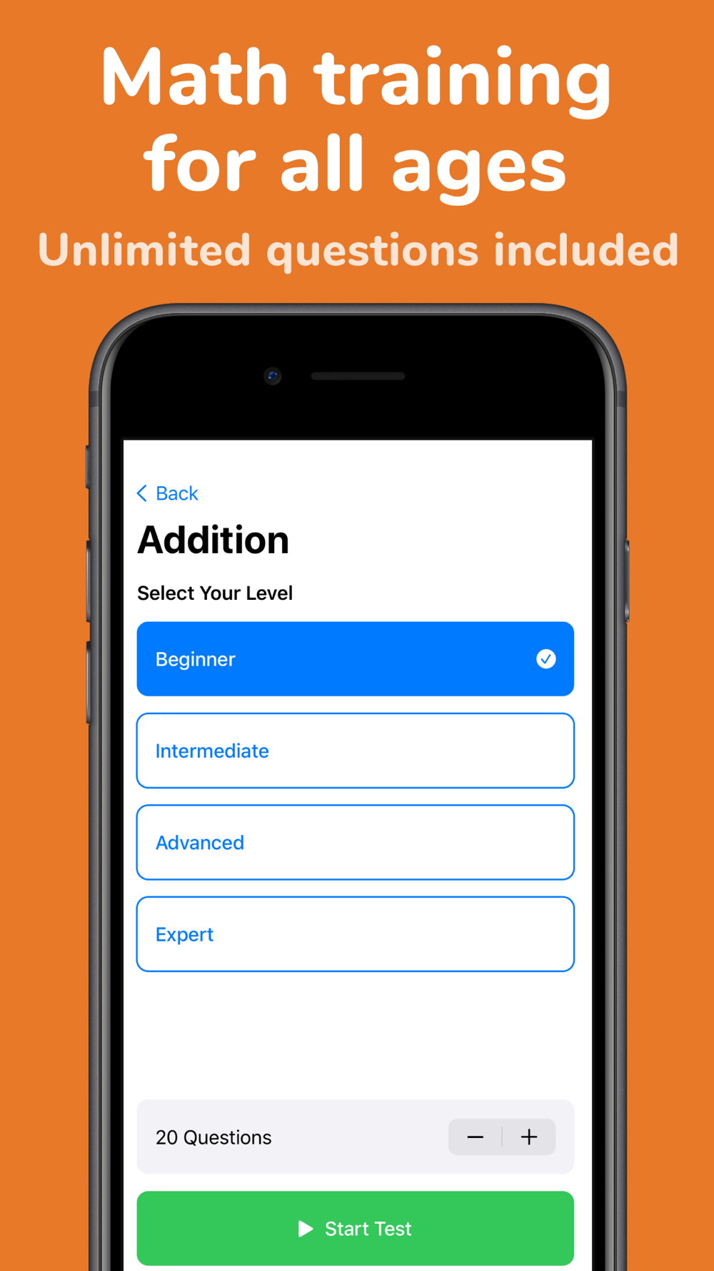 Mental math skills remain useful throughout a lifetime. That is why we made our app suitable for all ages and proficiency levels.