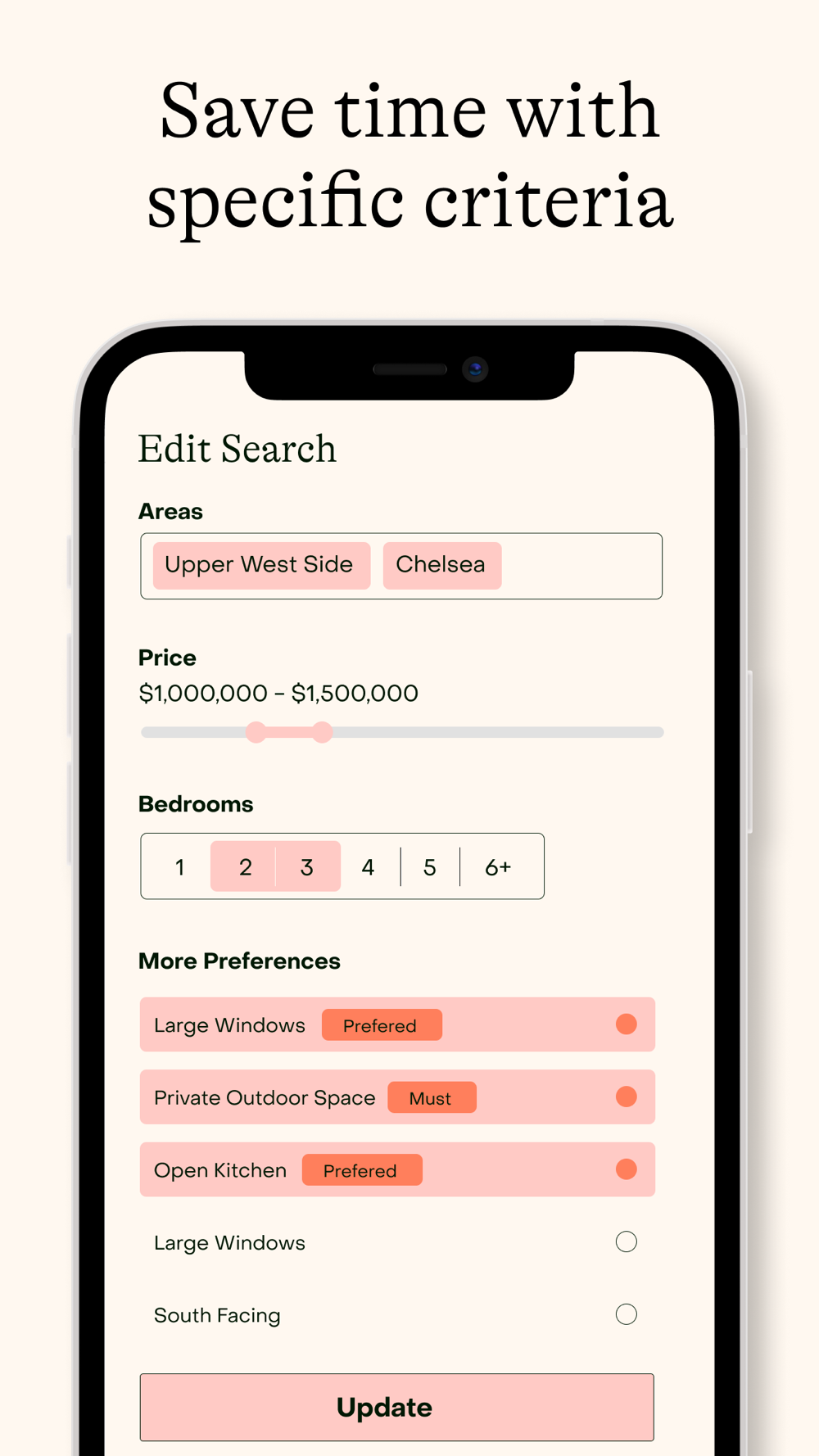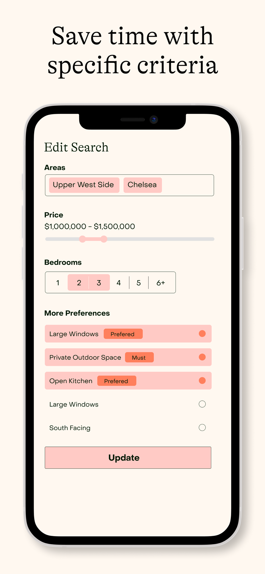 Get specific! You can ask Luke to filter by anything, like south-facing apartments, open kitchens, or to be in specific school zones.
