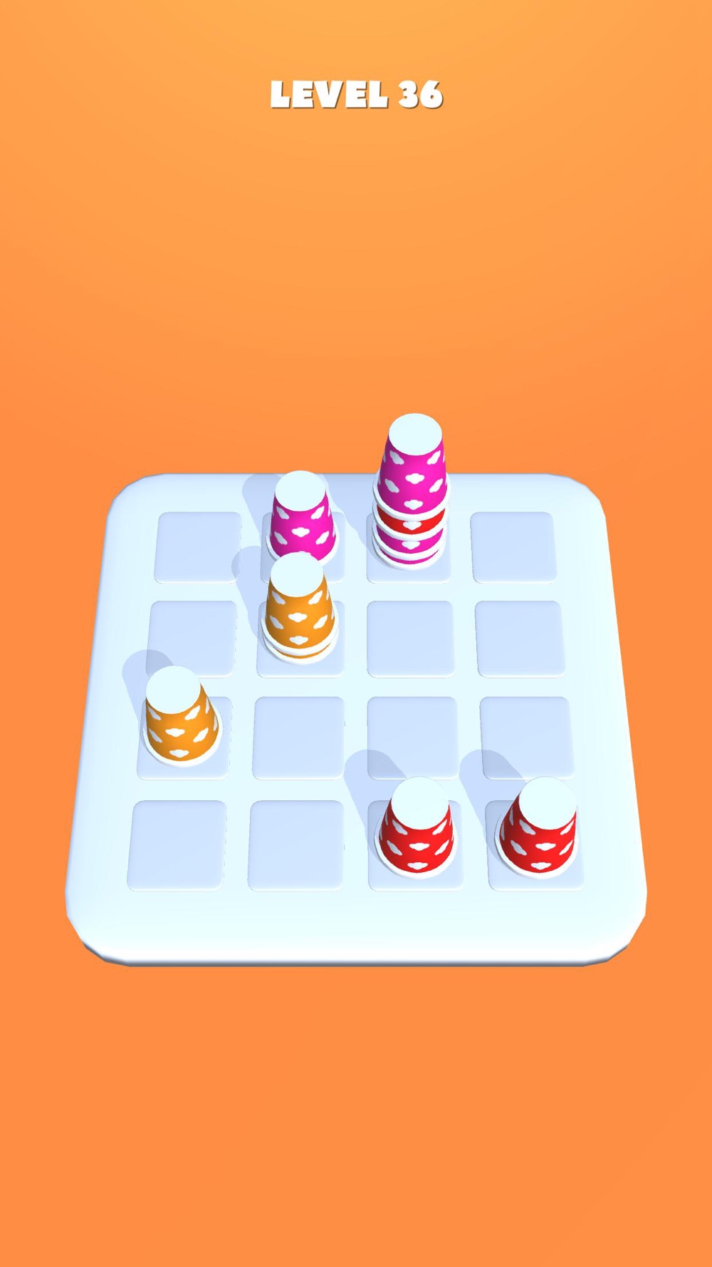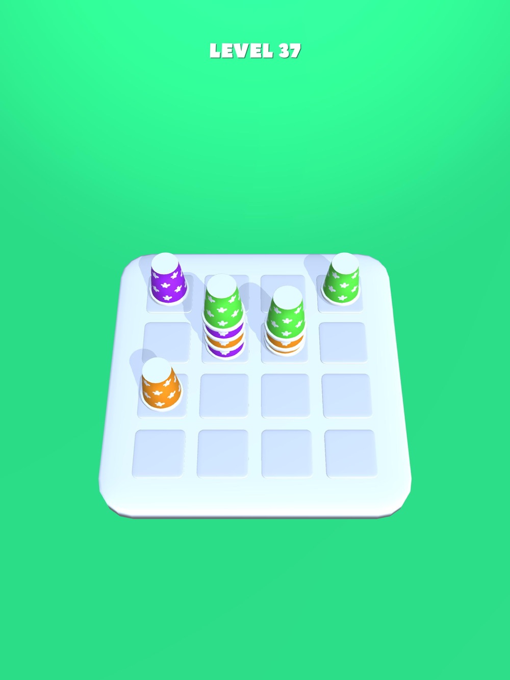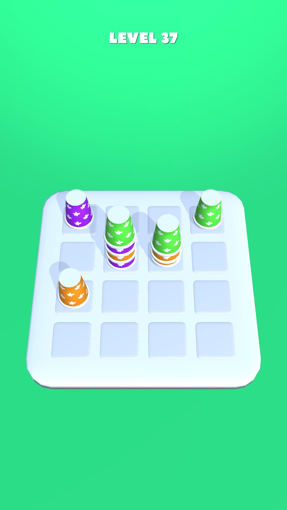 Solve the game by stack colorful cups. Think, strategize and predict every move.