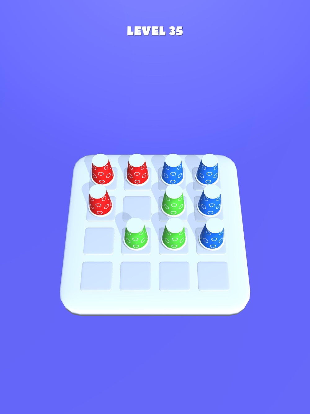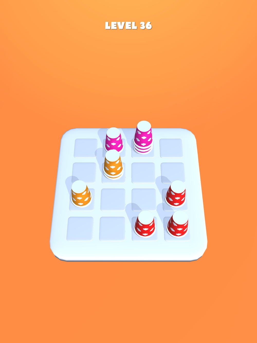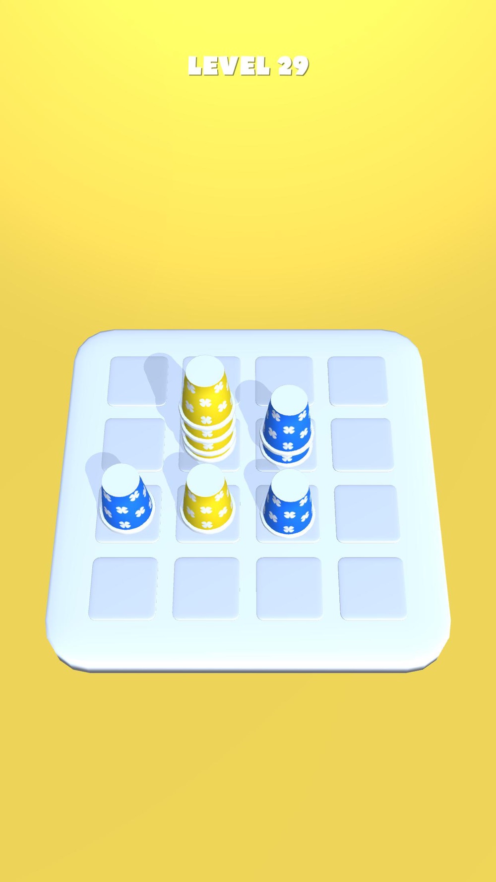 Solve the game by stack colorful cups. Think, strategize and predict every move.