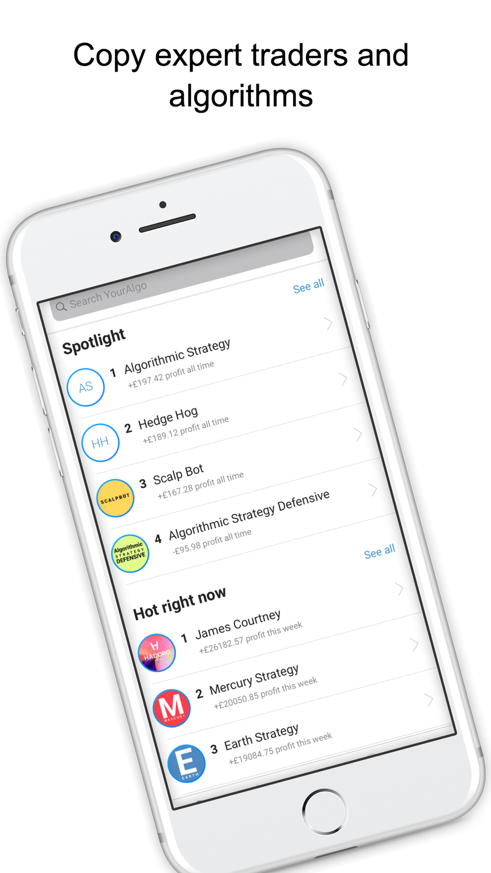 YourAlgo lets you execute trades, copy experts and message other investors all on one platform. Chat, trade, copy, all on the go. We allow you to copy the traders that matter.
