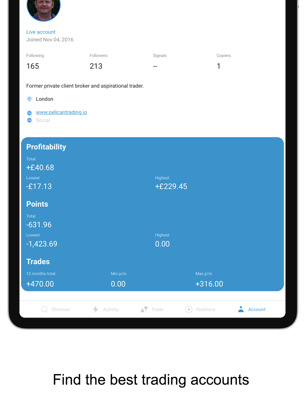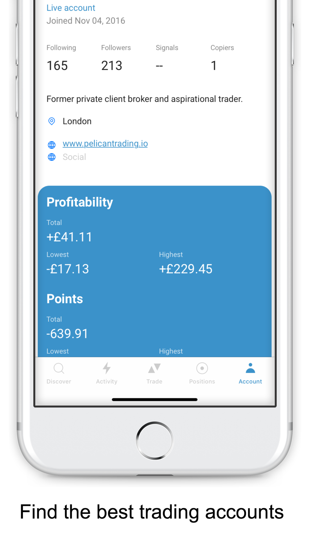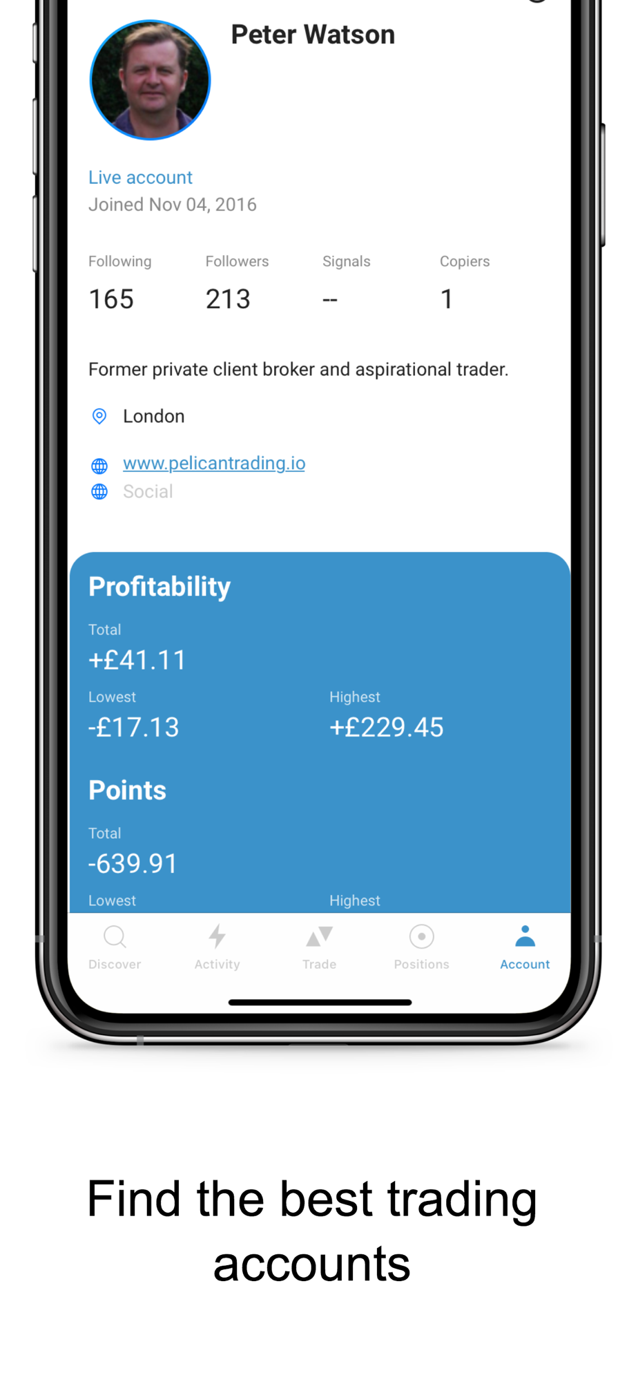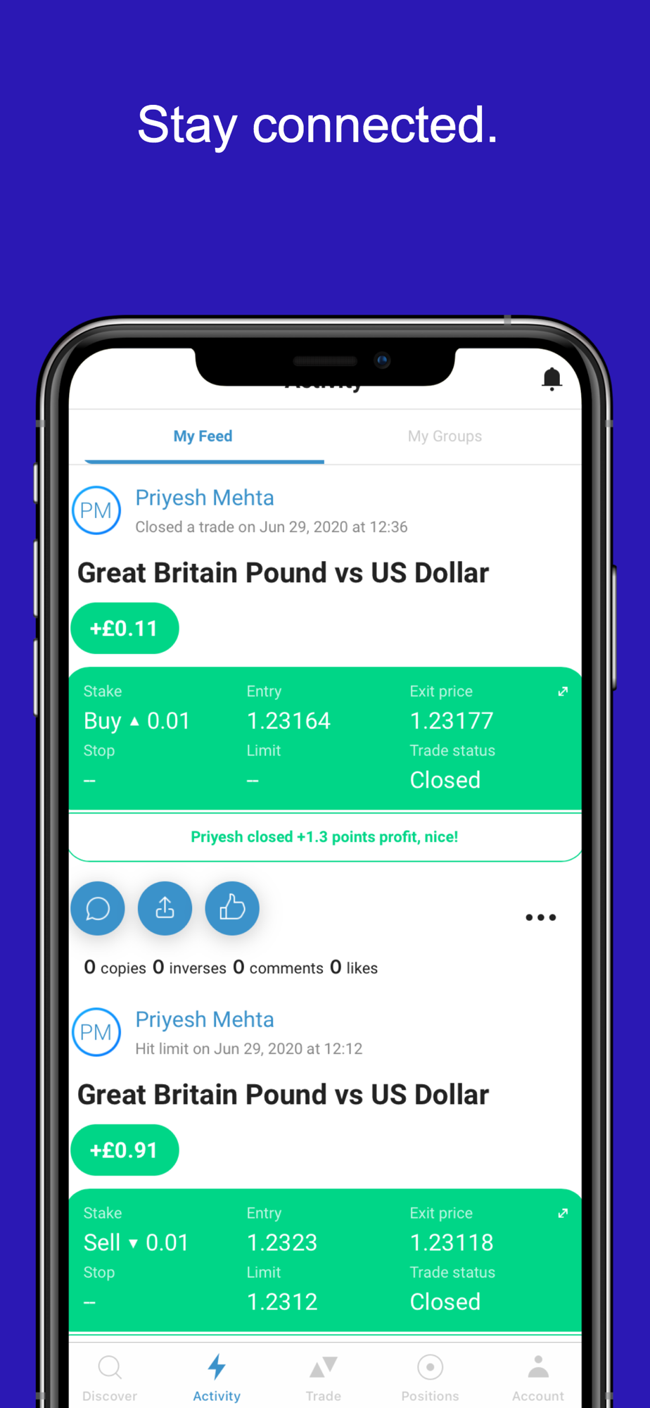 • Follow and copy trades from other users