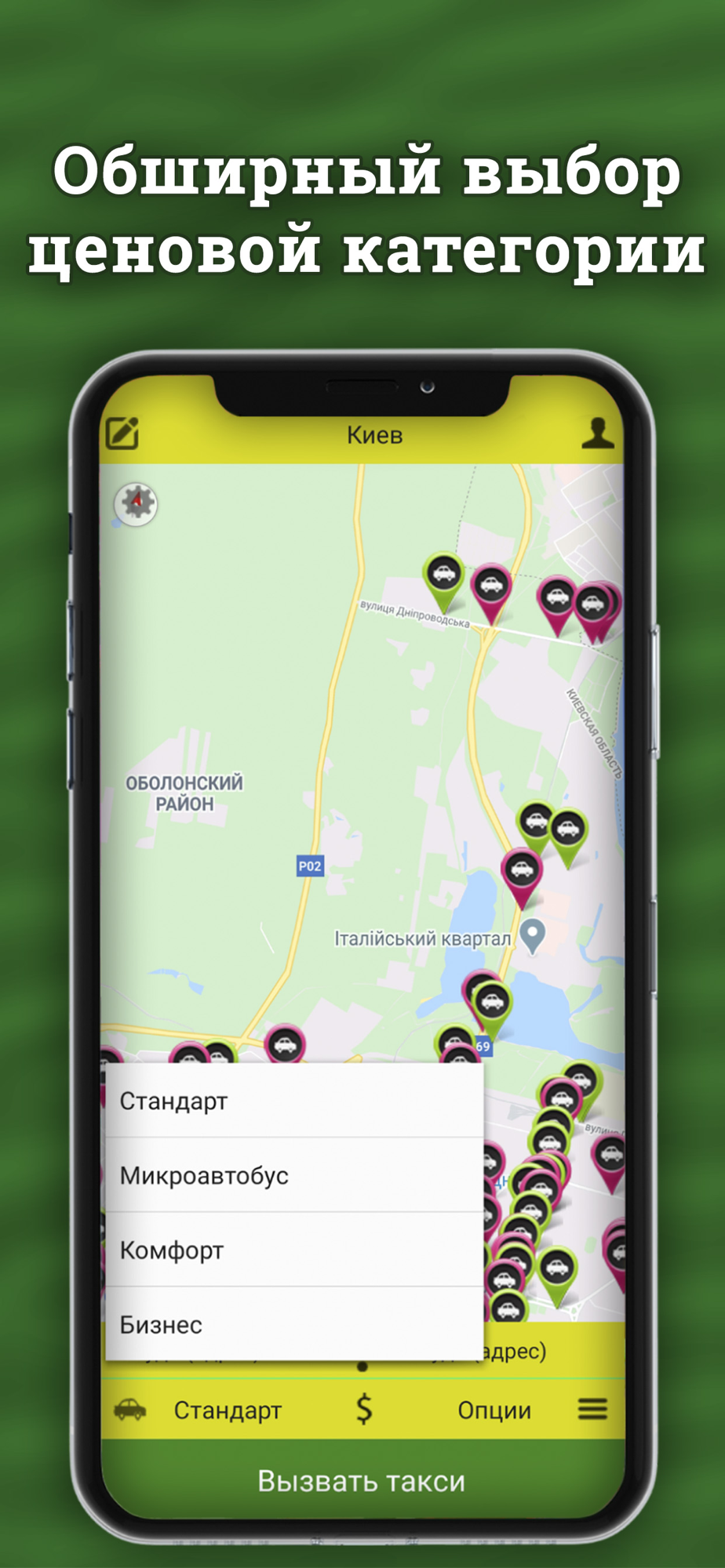 - Возможность вызвать такси разного класса (Эконом, Стандарт, Микроавтобус, Комфорт).