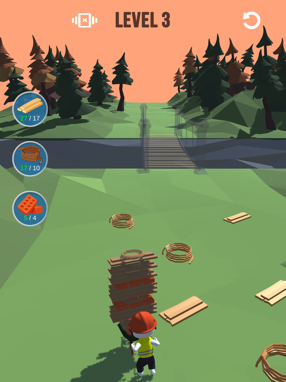 Help our worker get across! Collect materials build bridges and reach end of the road!