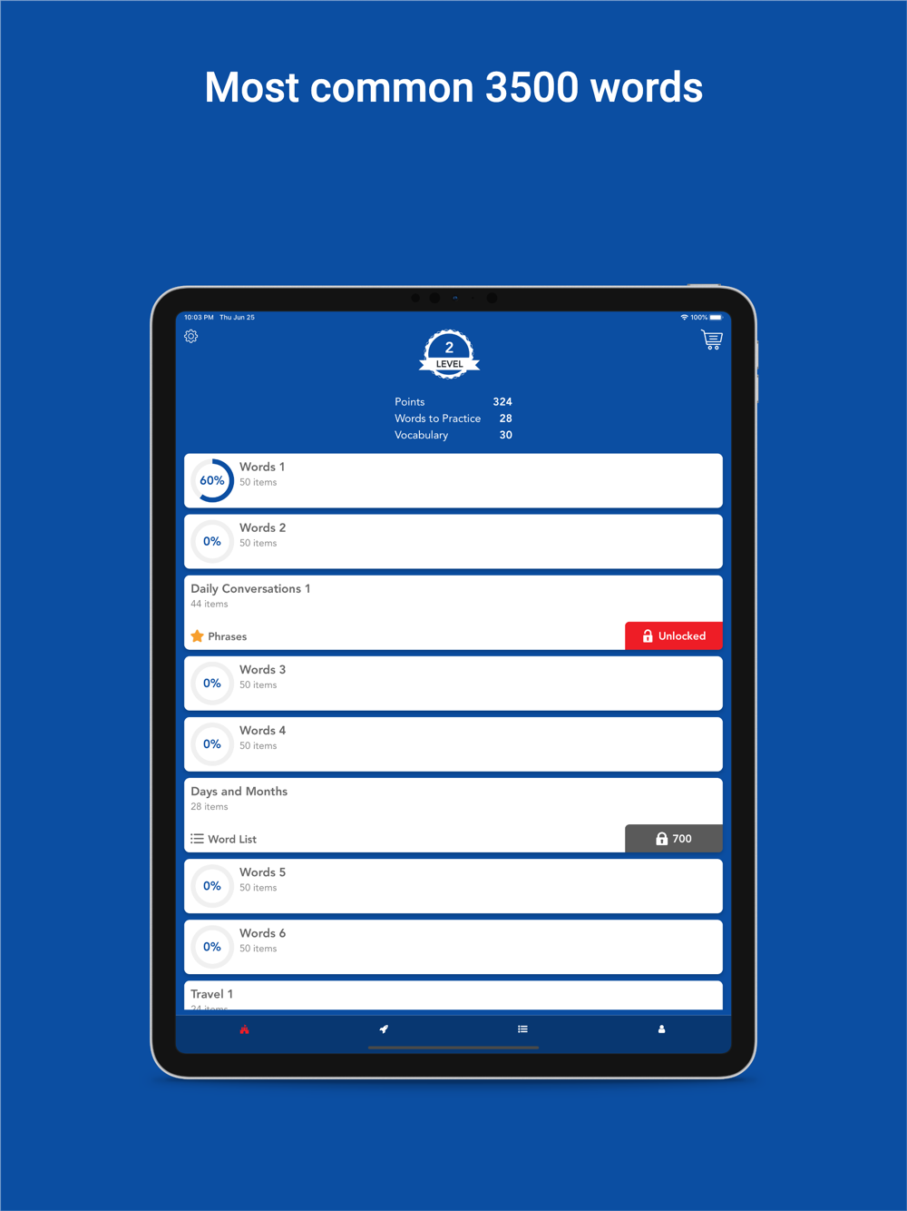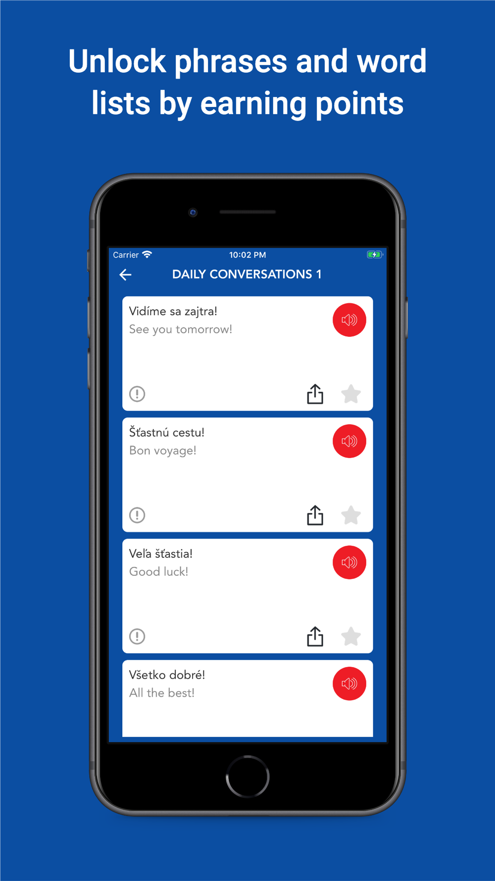 - Earn points by learning and practicing. Then unlock phrases and word lists.