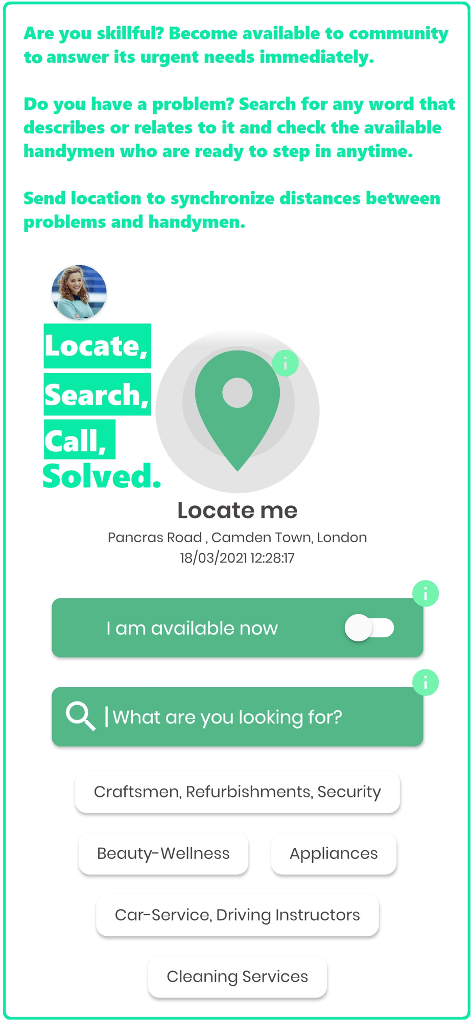 On the one hand, Solvers' mission is to be able to satisfy clients' needs, within maximum 1-2 hours after Solvers' announced their availability in the app. It is important for the Solvers to be aware that once checking "I am available now", they can anytime be contacted by clients, and anytime they should be ready to step in.