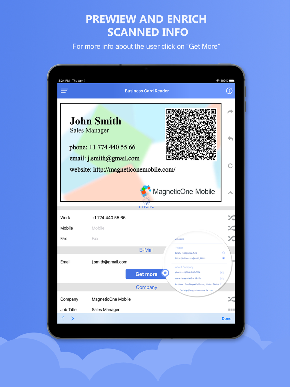 Simplify the way of filling the contact’s base, keep up with the modern world and use the best innovative business solutions, such as Business Card Reader from MagneticOne MobileWorks!