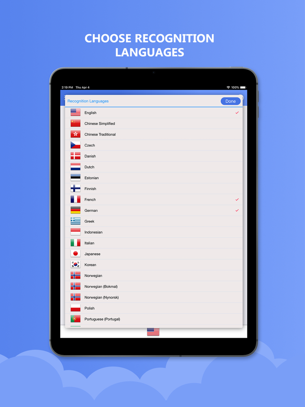 Supported recognition languages: