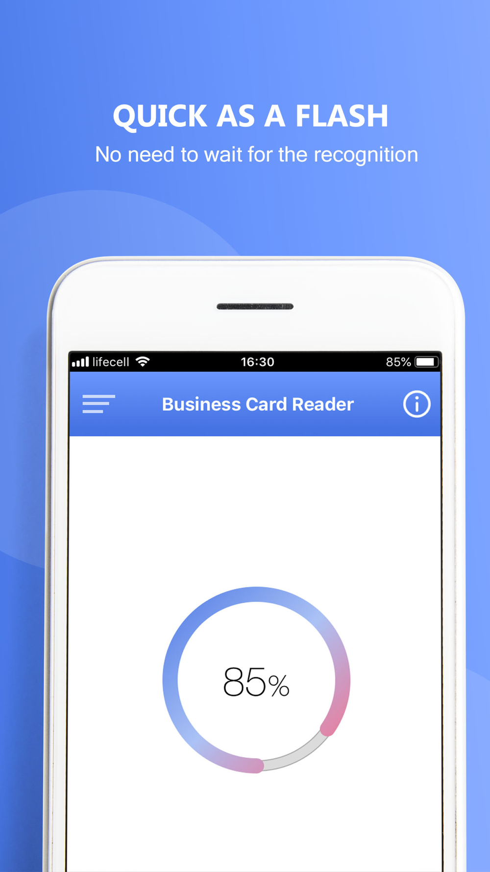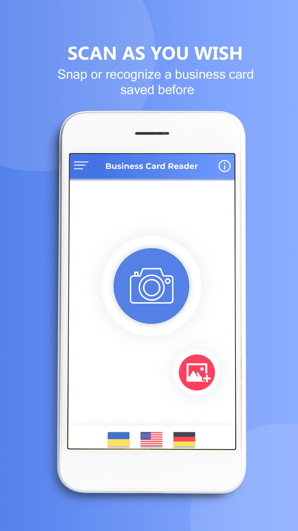 1. Take a photo of a business card, the app will automatically recognize all the information from it.