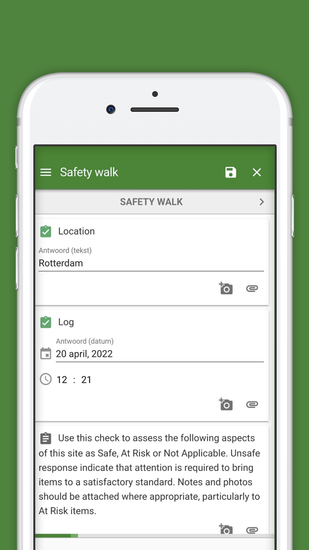 • Voeg foto’s toe per inspectiepunt