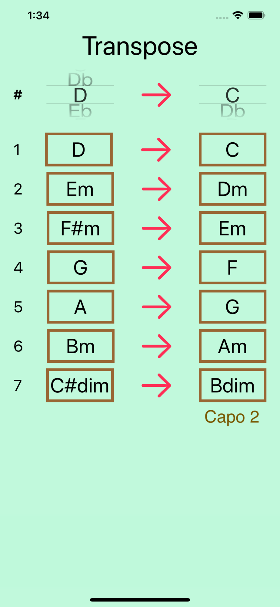 Chord Transposer Helper is a simple to use chord translation app to help musicians transpose songs to different keys.