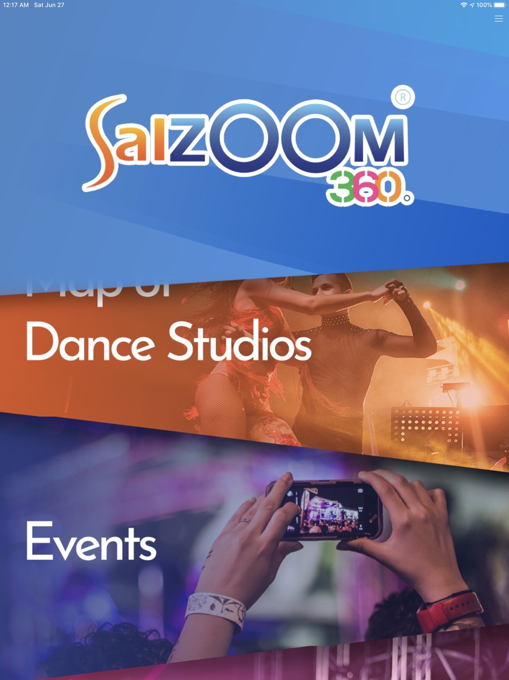 The future of Salsa is here! Keeping the salsa community together. Z00M-in and share your Salsa experience with the world. SalZOOM 360 is an immersive view into the exciting world of dance and music. In this new normal, the new and improved SalZOOM APP reimagines your salsa scene in a 360 way. SalZOOM 360 is your ultimate smart phone guide to share your passion for Latin music and dance. Find the best places to dance, learn, shop, or visit — in any city in the world. Access over 7,000 dance schools, salsa clubs, music groups, DJ’s and teachers in our business directory. And watch over 400 of salsa videos containing live or virtual concerts, salsa congresses, competitions and more. Looking for a virtual dance class? Traveling or looking to discover new places to dance nearby? Get SalZOOM APP today. If you are a dance promoter, we will share with you the latest tools and technology to pivot your events to the new world we are all living. All this for the cost of a Beer!