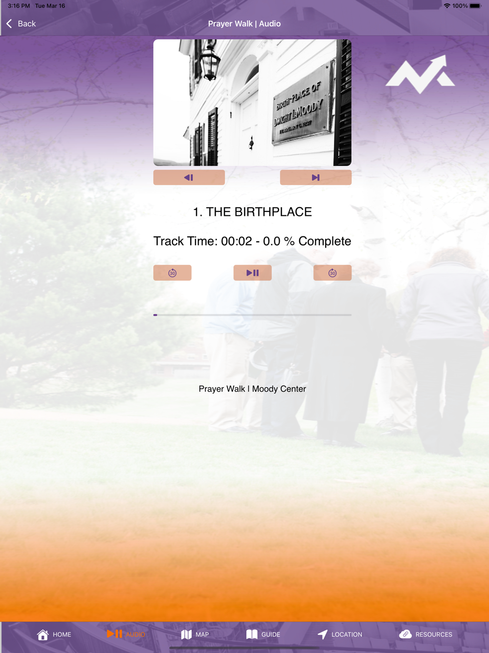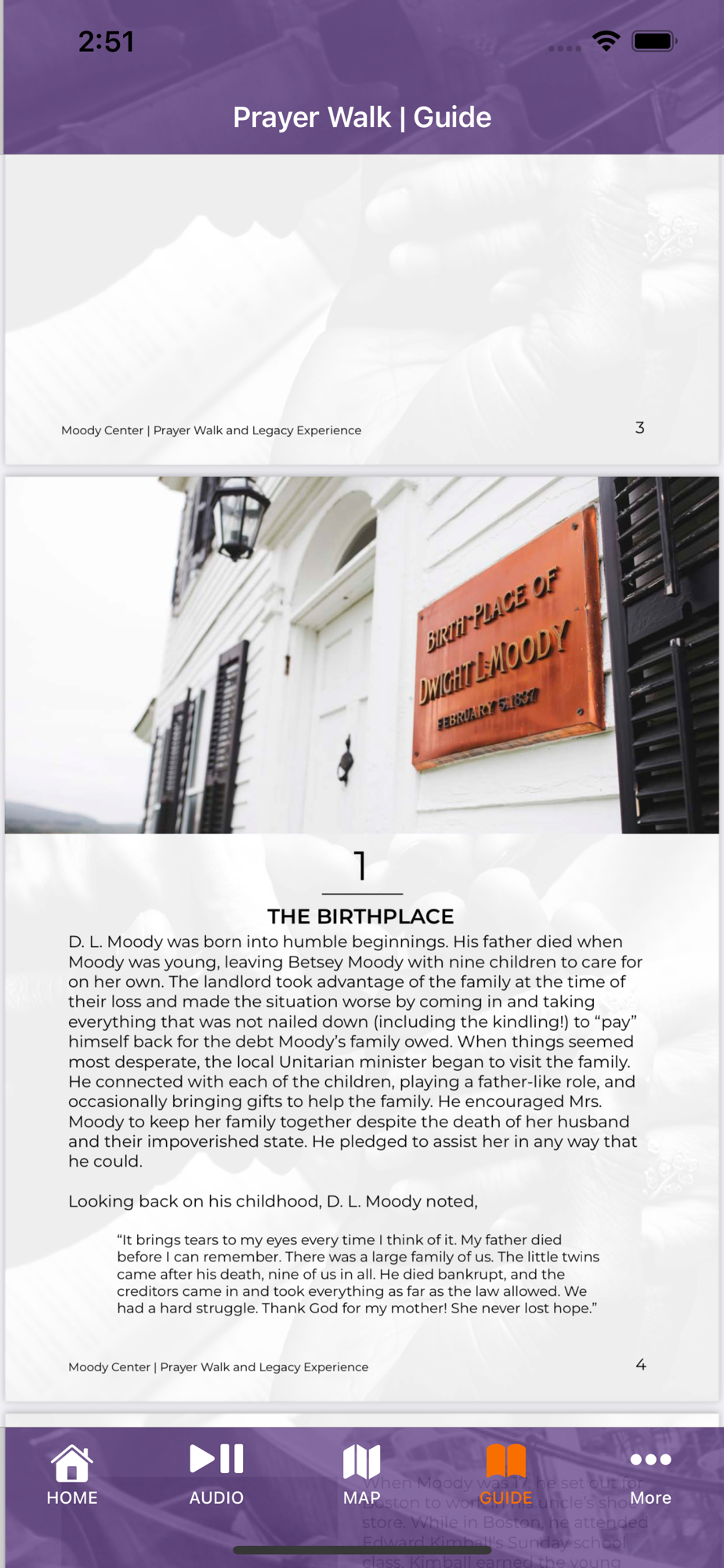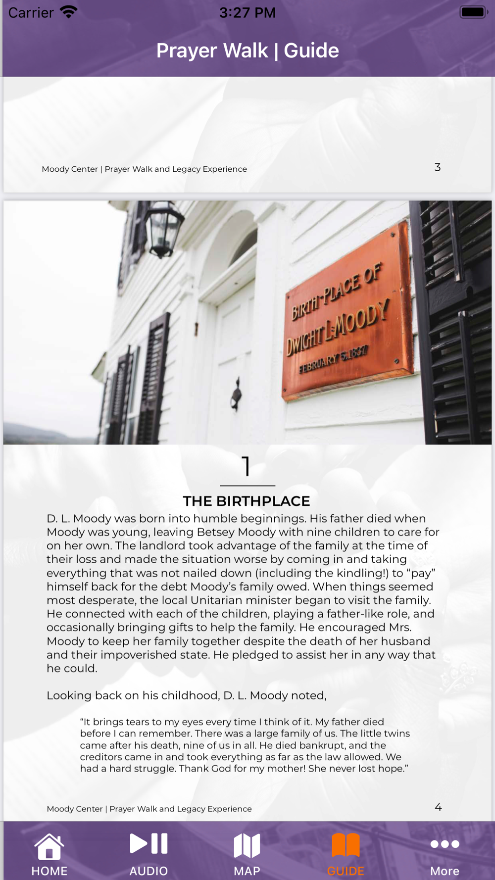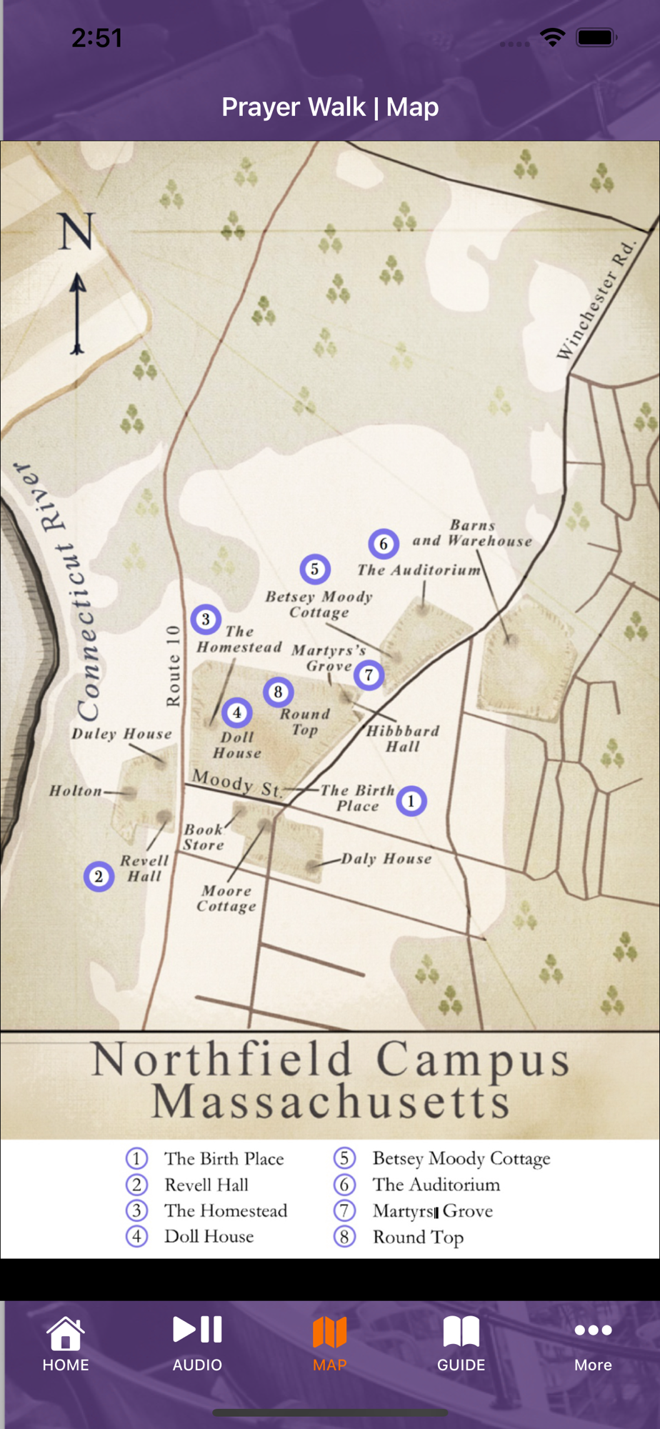 * Discover- This app will allow you to visit or virtually visit the various historic sites on the Moody Center campus. You will see D.L Moody's birthplace, Revell Hall, Homestead, Doll House, the D.L Moody Auditorium, Martyrs Grove and Round Top.