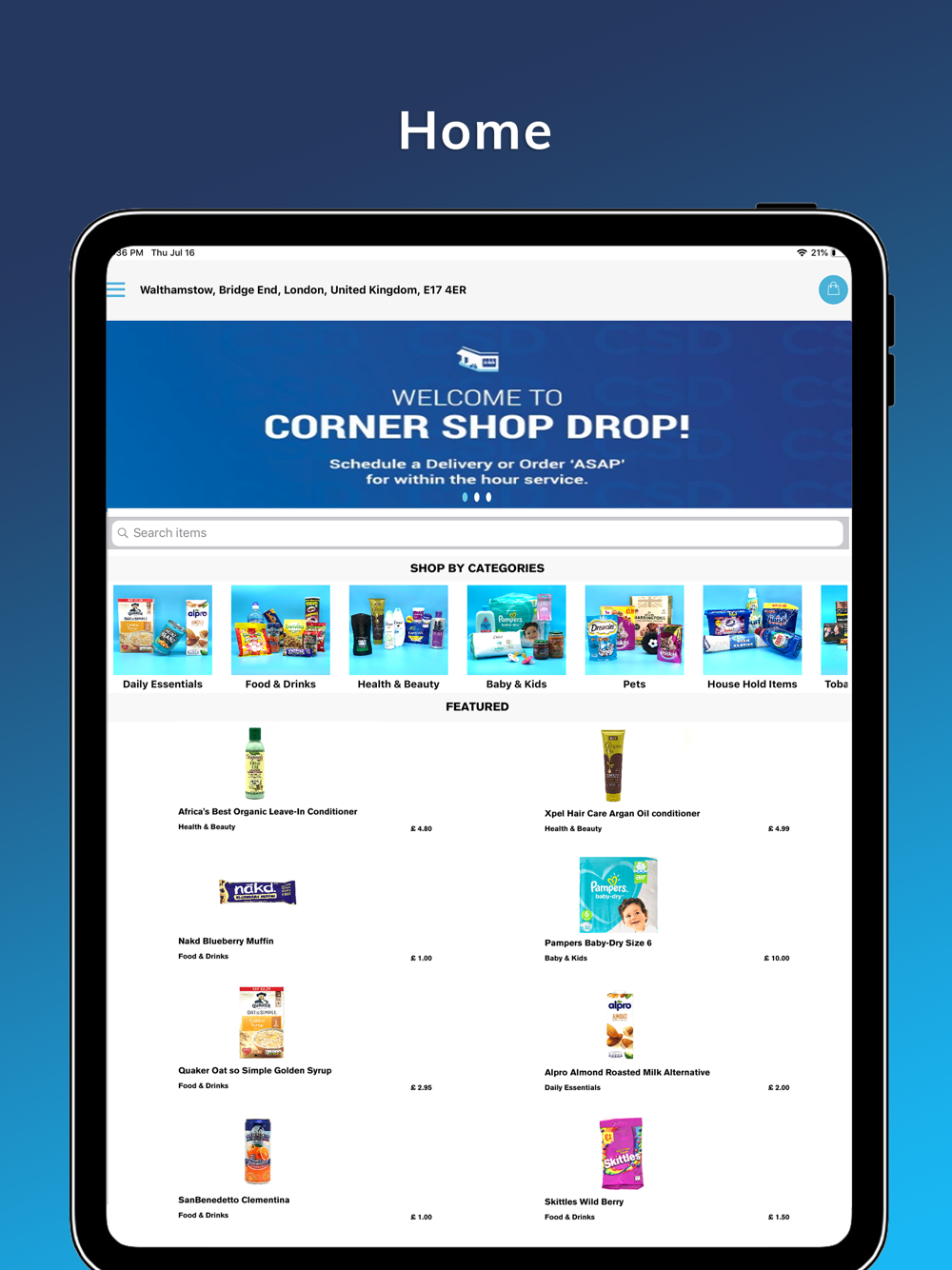 Enter your postcode to shop our categories or type your favourites into the search bar to be taken directly to them.