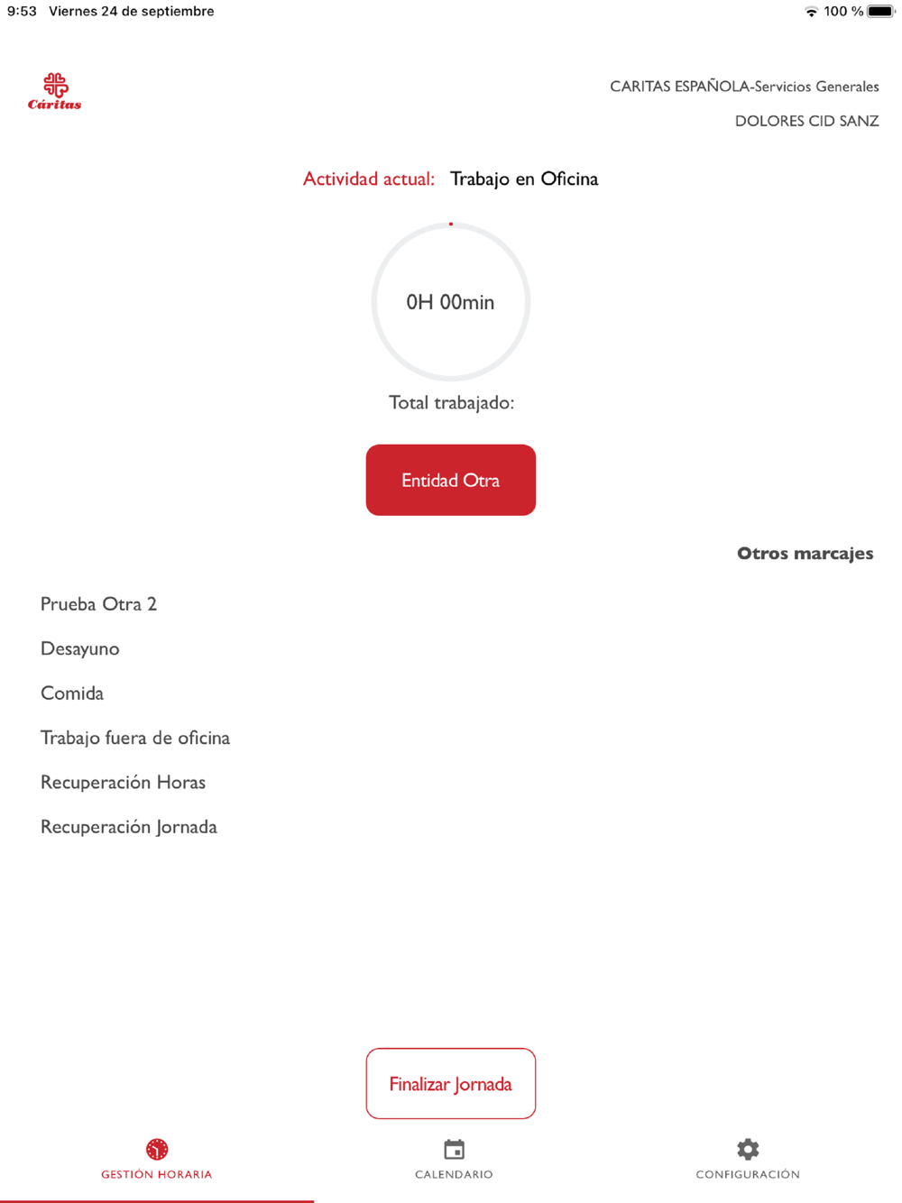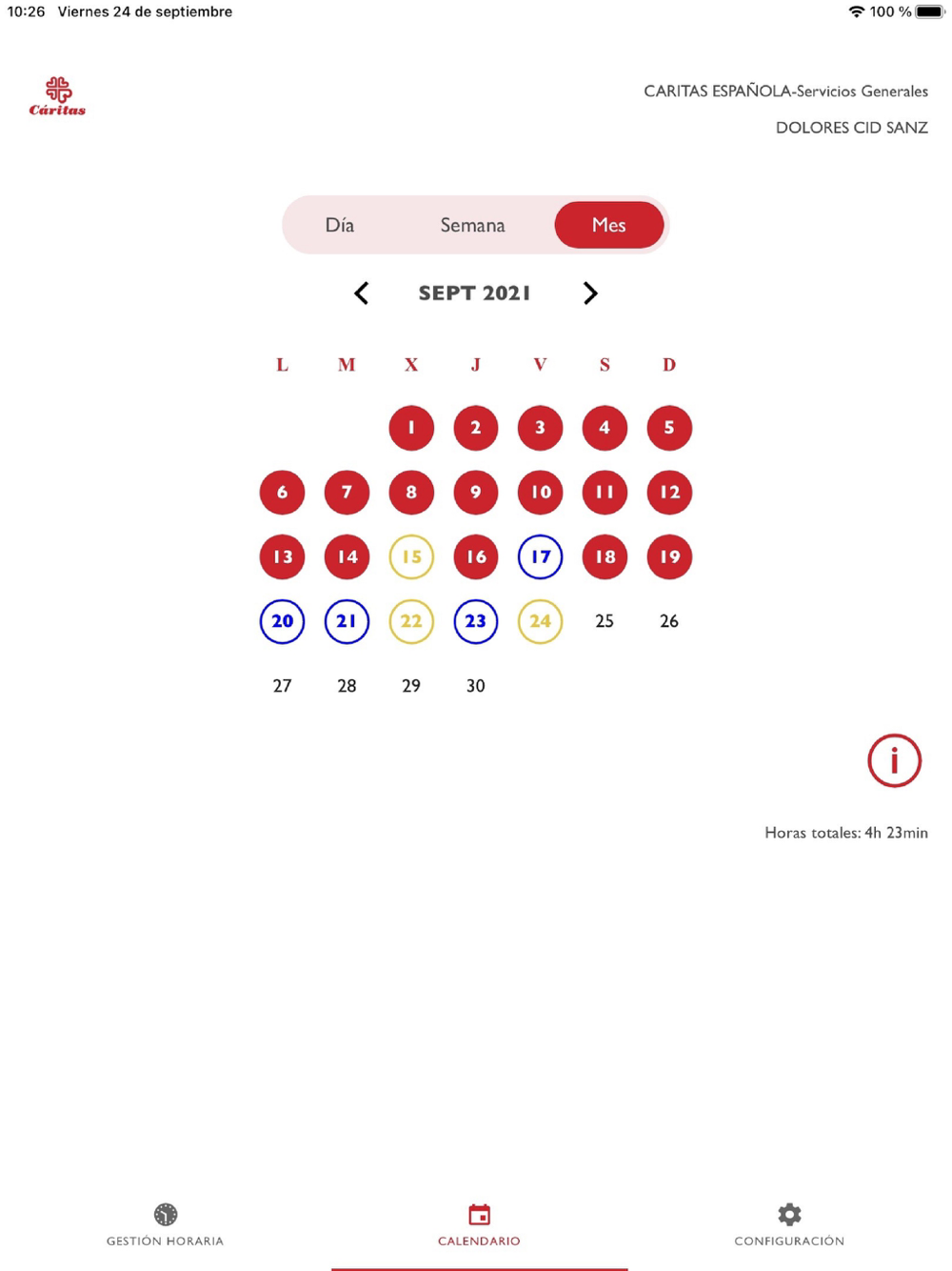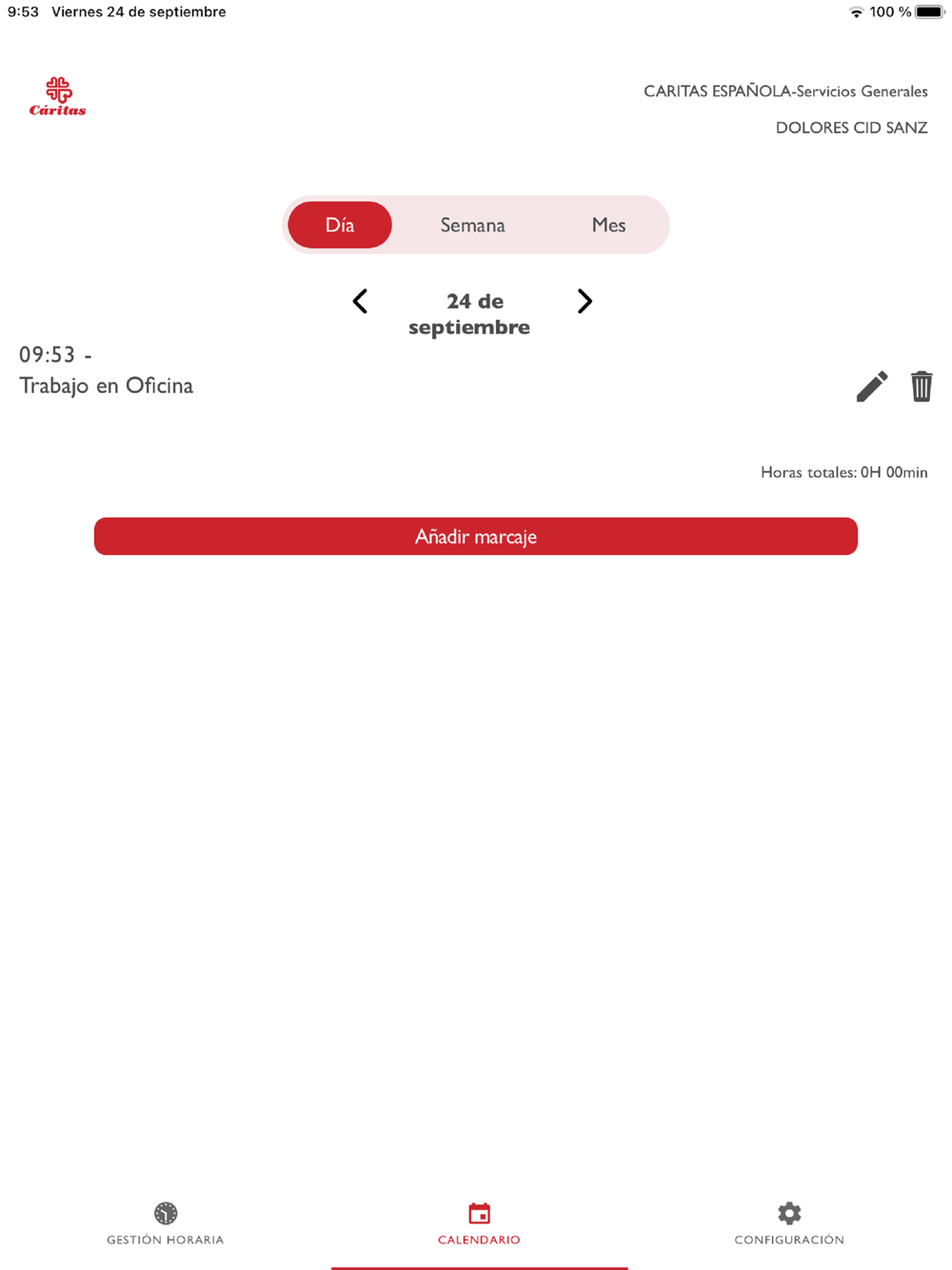 Esta aplicación permite registrar los horarios de trabajo a los agentes de Cáritas desde donde lo necesiten.