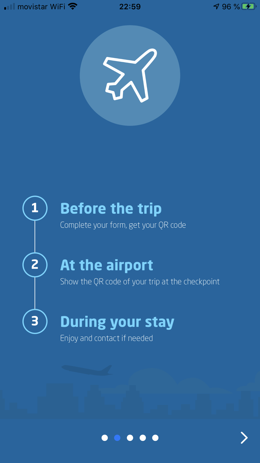 Spanish Government has declared as mandatory to fill in a health form before travelling to Spain, and use the QR code linked to this form to travel to Spain, and show it when you arrive at any Spanish airport. This app: