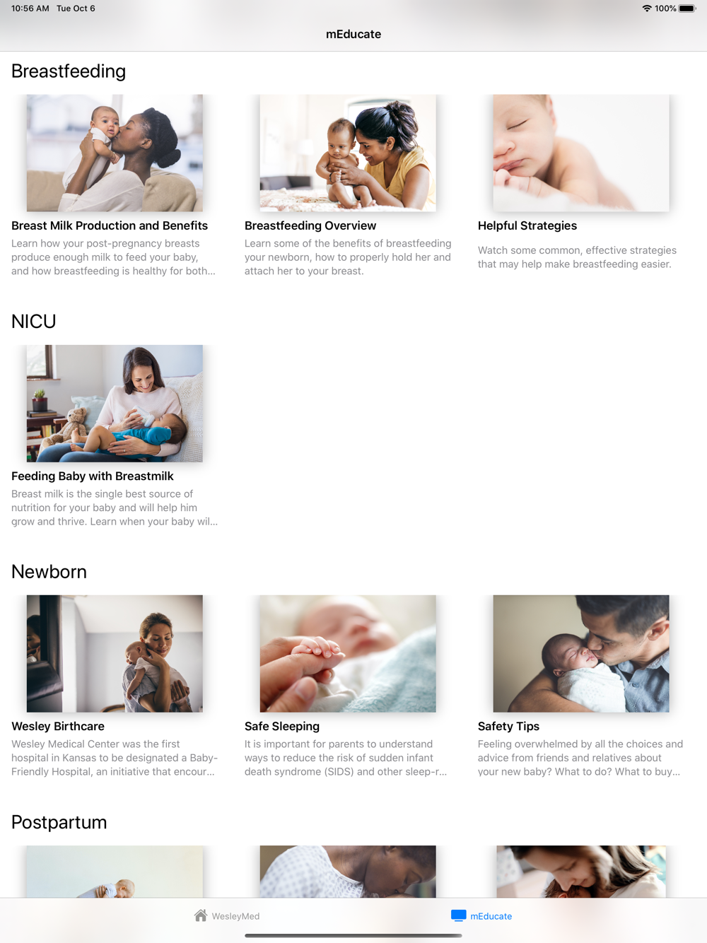 WeselyMed provides Wesley Healthcare patients with the information about the medical service lines they care about in the palm of their hand. From general information, to finding a physician, to insightful on-demand video education, WesleyMed provides current and potential Wesley Healthcare patients in the greater Wichita, KS area with information they need, when they need it.