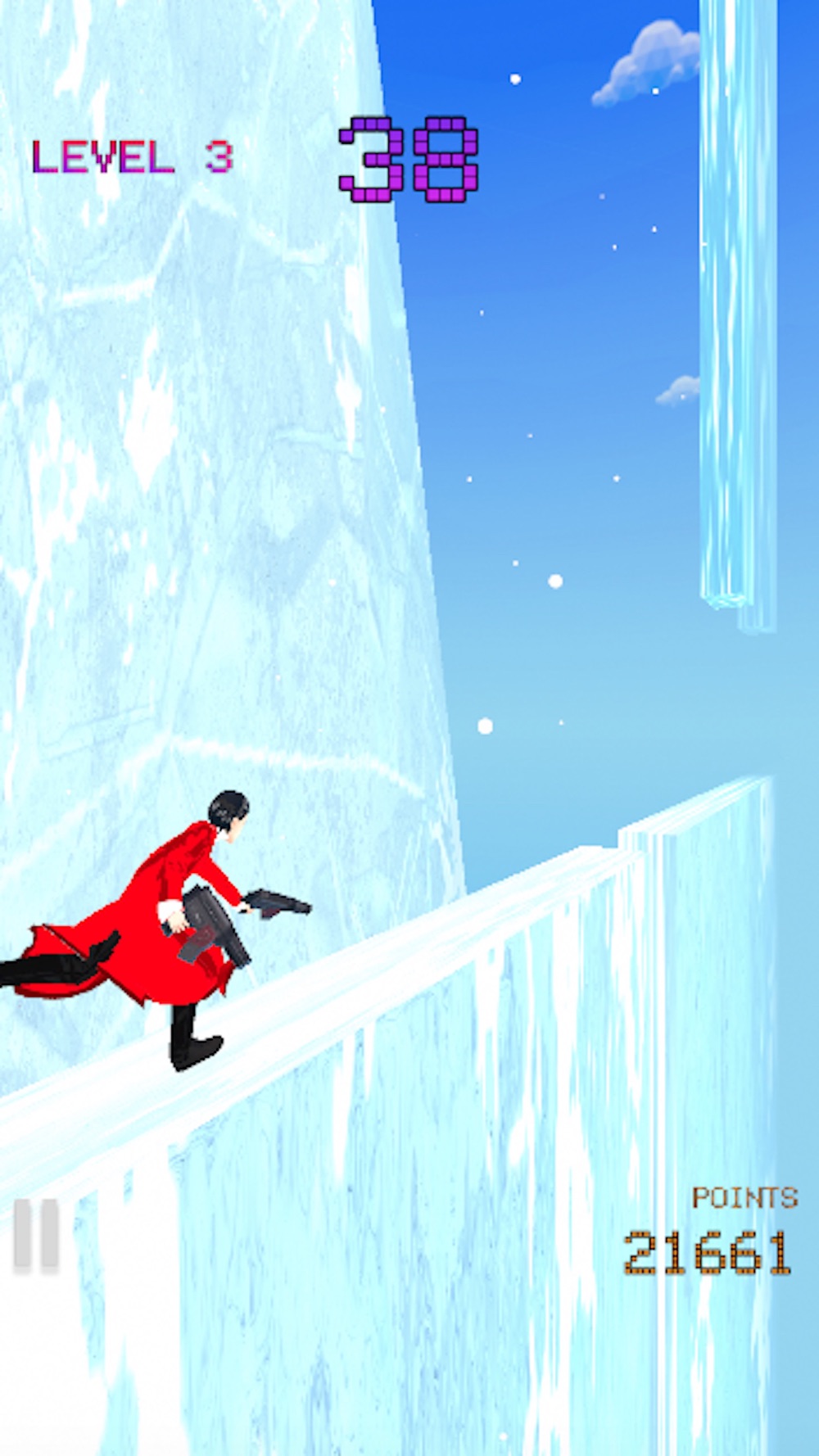Enjoy the breath taking ice world and be aware of falling ice bergs. Jump through hurdles and traps to reach the highest level and score.