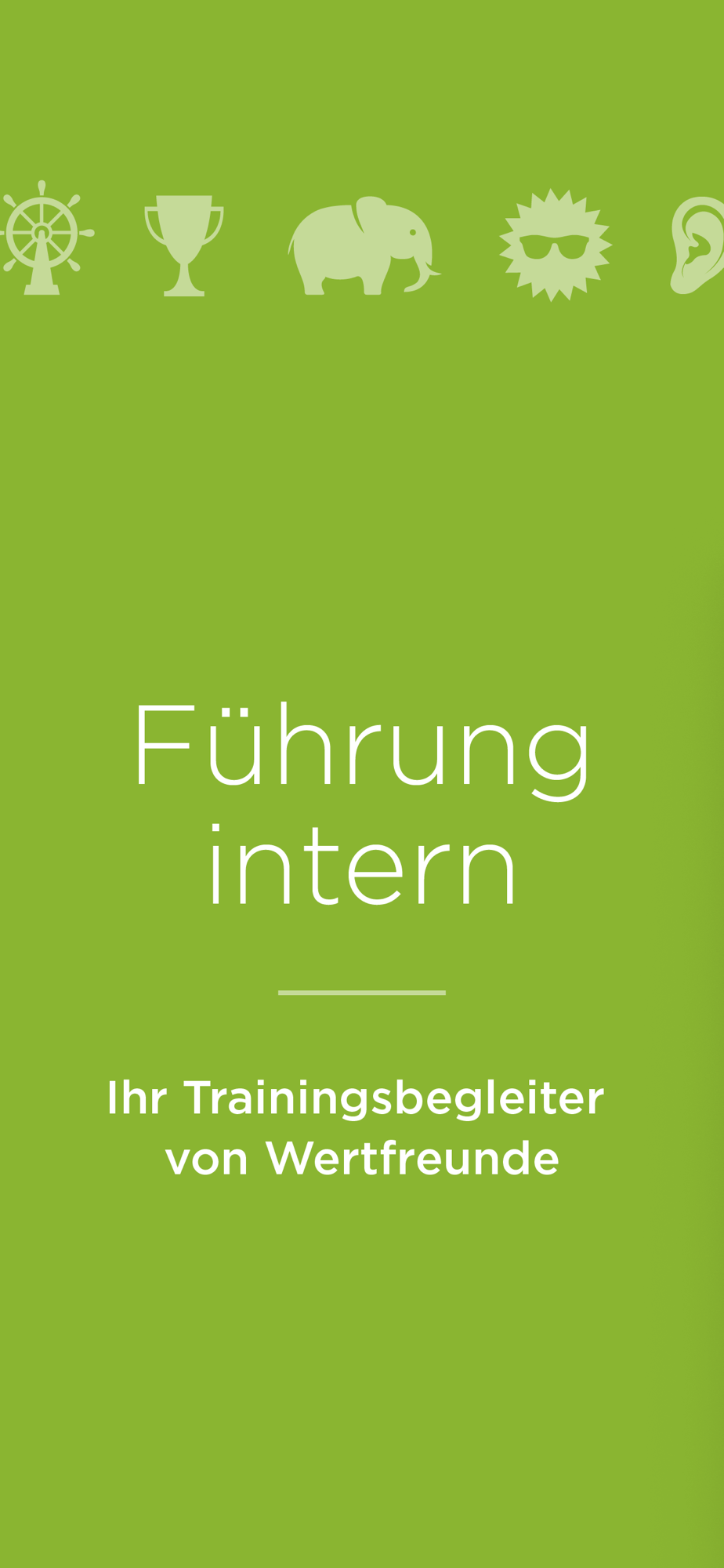 Die App "Führung intern“ richtet sich ausschließlich an Unternehmen bzw. deren Mitarbeitende, die an Wertfreunde-Trainings und/oder -Coachings teilnehmen.