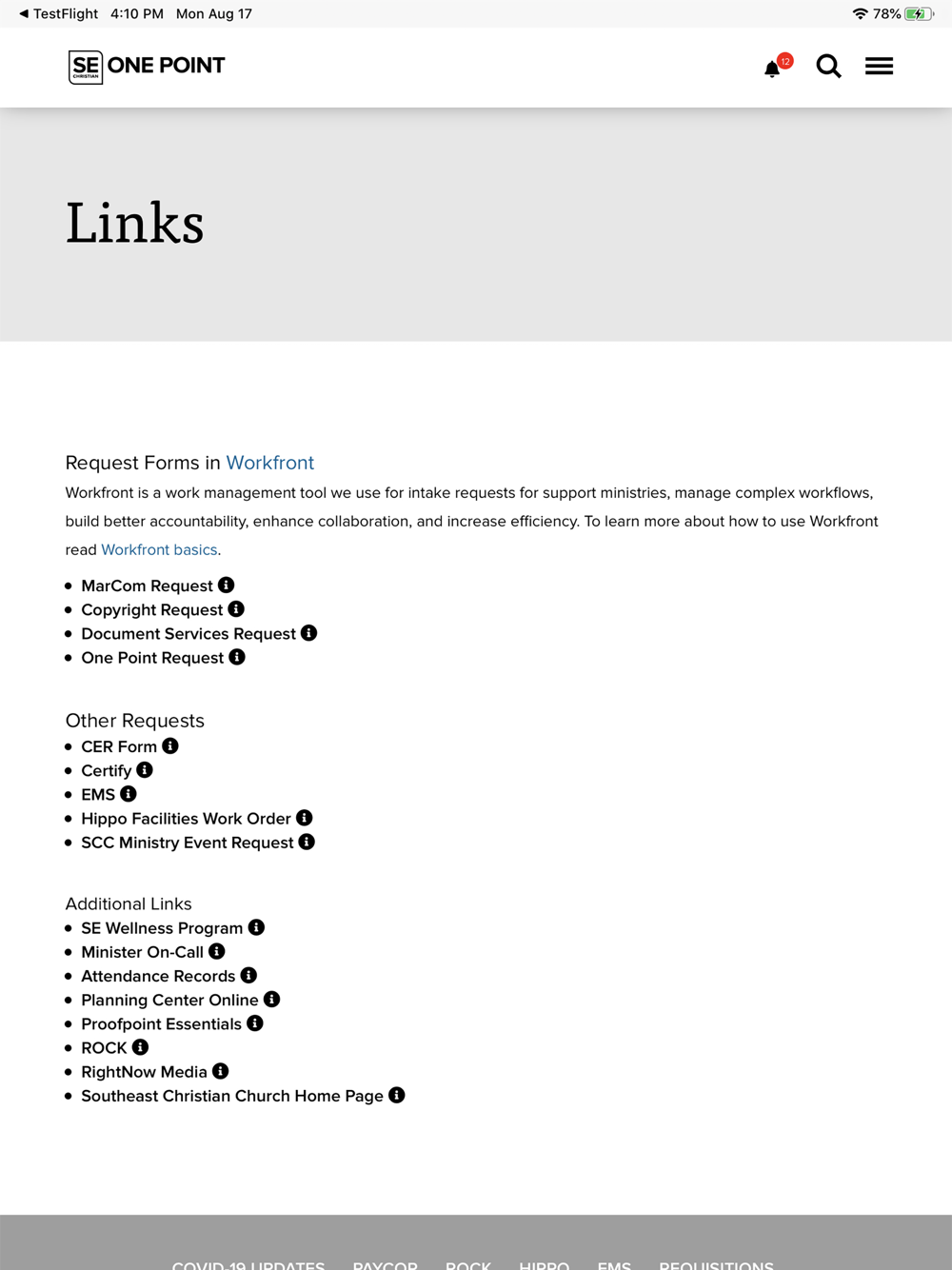 One Point is the hub of communication and information for the SE Staff Family. Here you can access all the latest news, information, documents, training, and more from your mobile device. With One Point you will receive: