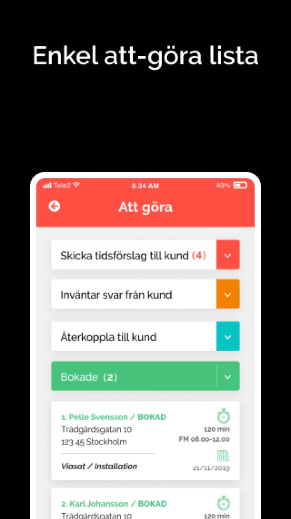 · Enkel och tydlig översikt över alla dina bokade uppdrag