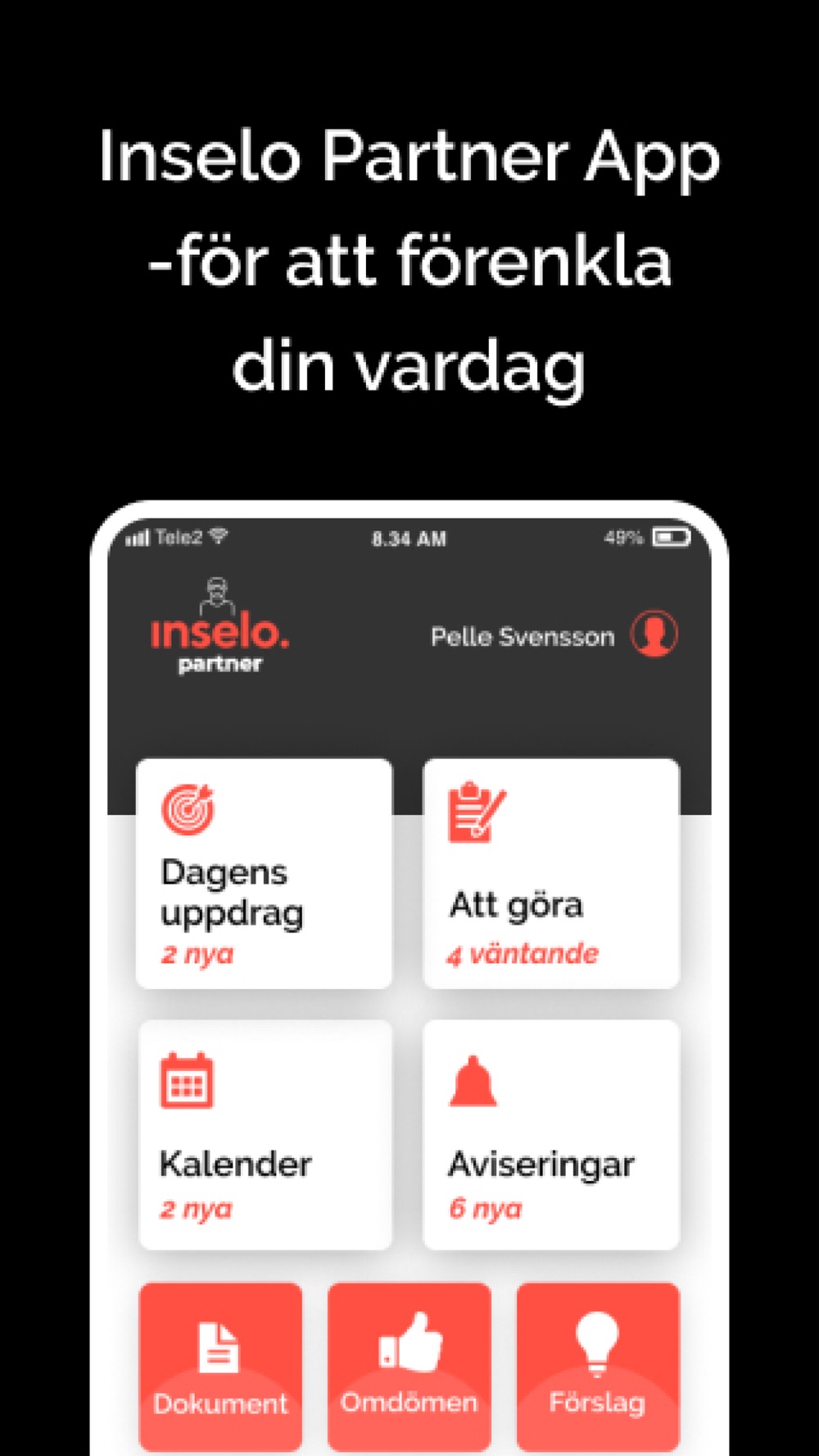 Med appen Inselo Partner får du som partner tillgång till dina tilldelade uppdrag och hanterar därefter allt administrativt direkt i appen. Du får även tillgång till all dokumentation och ett enkel process för att tidsboka dina egna uppdrag.