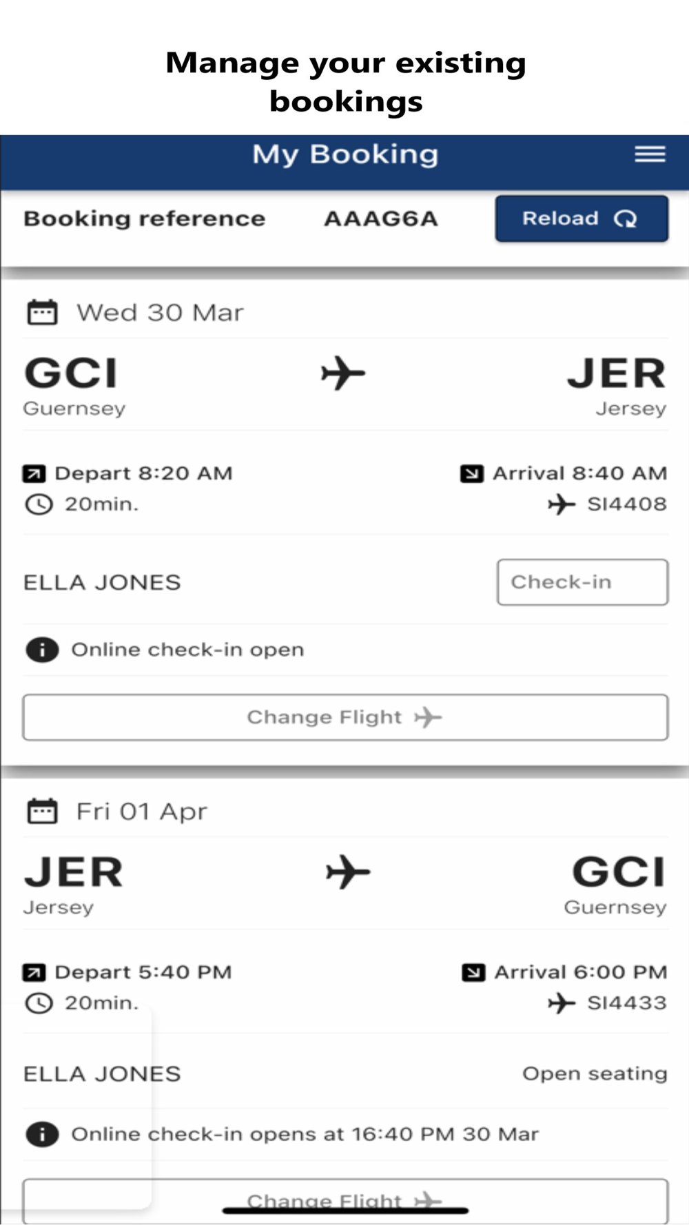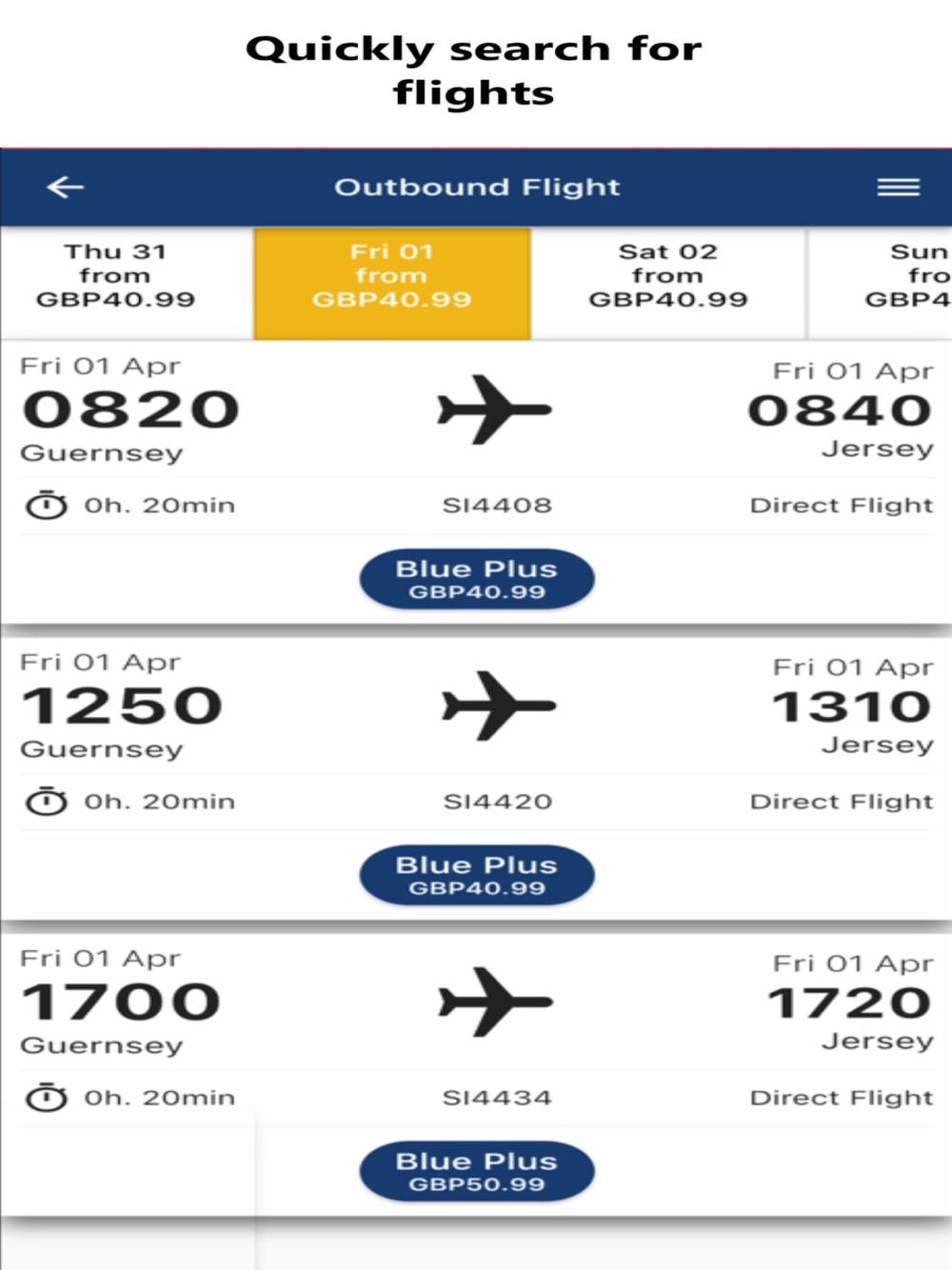 The Blue Islands app makes booking and managing your flights easier to handle on the move with the following features.