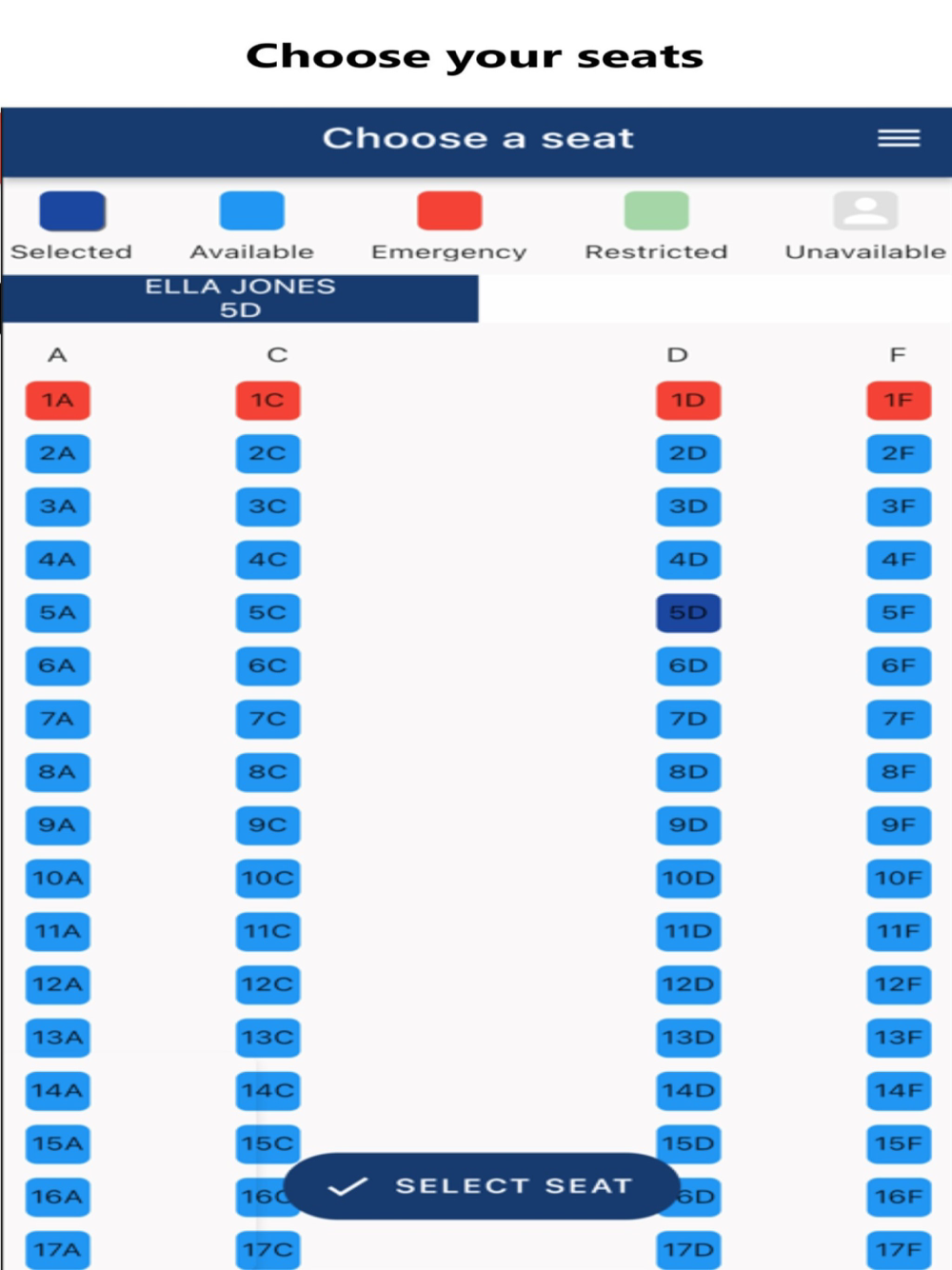 -Choose seats