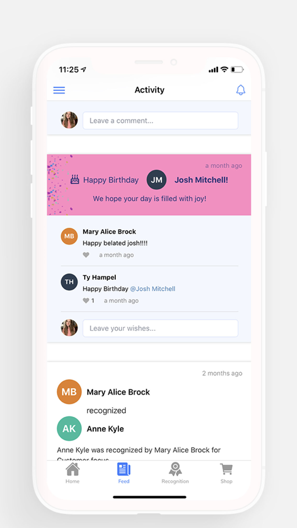 - Recognize or incentivize customers, colleagues, and teams any time from anywhere