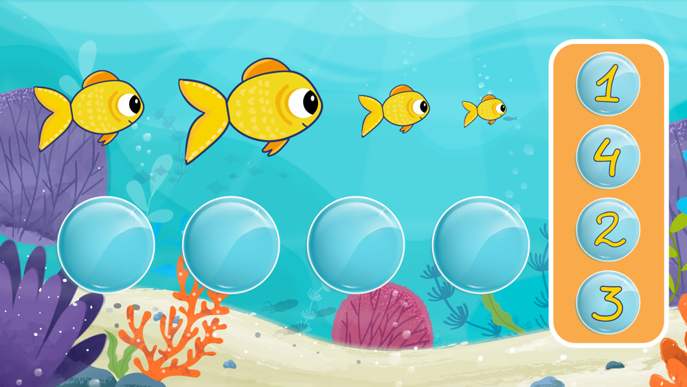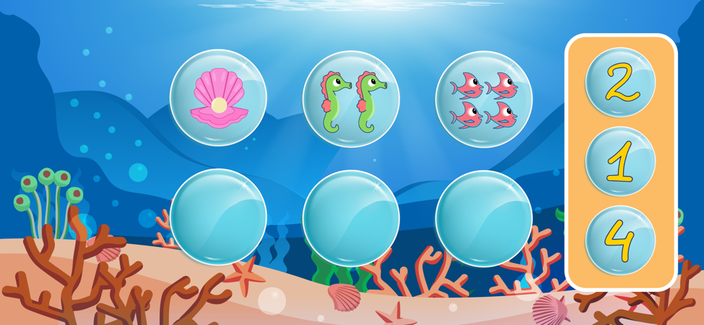 Learning has never been this enjoyable! In the "Bubbles" game, babies, kids and toddlers will pop bubbles to reveal numbers and colors, fostering their understanding of counting and basic arithmetic. In "Matching Fishes," kids will have a splashing good time while honing their memory and concentration skills.