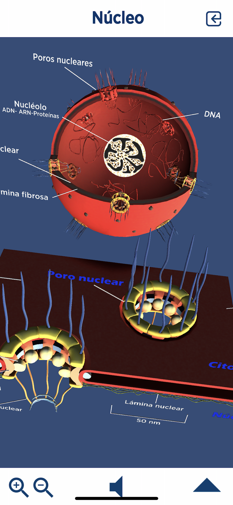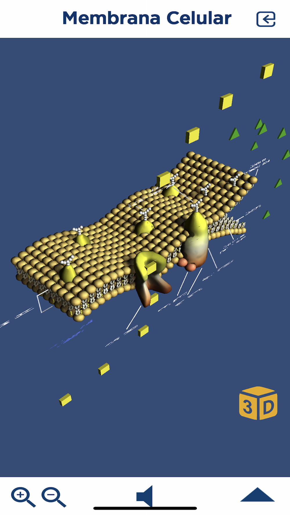 Permite visualizar la célula tanto los componentes de la célula animal como vegetal, además de una animación de los tipos de transporte en la membrana celular.