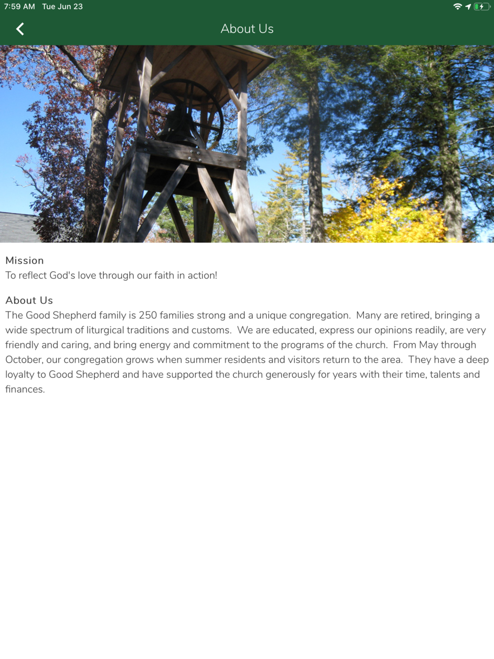 The Good Shepherd Episcopal Church in Cashiers, NC mobile app is packed with features to help you pray, learn, and interact with the church community.