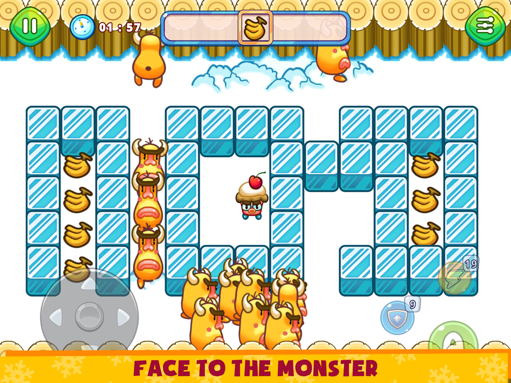 Jump out of the ice cream cone and start your adventure in the icy lands with the popular puzzle game, Watch out for the frost monsters! Their brains are frozen, so they won’t stop when you get in their way! Break the ice cubes with your frost breath or create and use them as obstacles to trap the monsters!