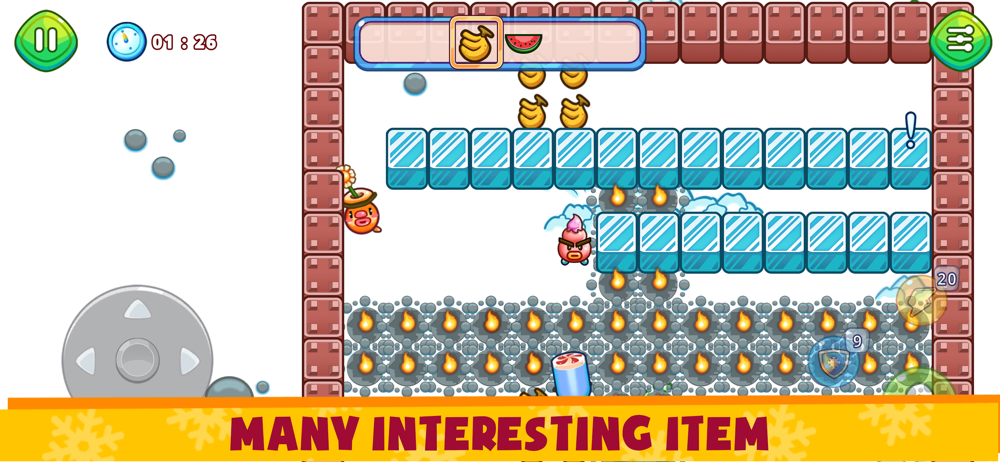 - Collect fruits and items on the Map in the shortest time to achieve a high score