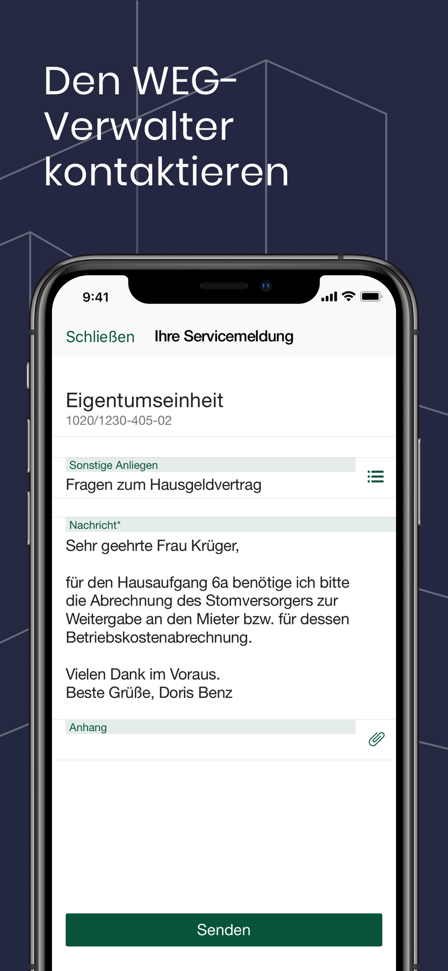 Ob eine defekte Klingelanlage oder lediglich eine Namensänderung - mit der ImmoSupport App können Sie Schadensmeldungen oder Serviceanfragen digital an Ihren WEG-Verwalter von ImmoSupport schicken, ohne sich an Öffnungszeiten halten zu müssen. Außerdem können Sie in der App alle Informationen zu Ihrem Eigentum und Ihrer WEG abrufen oder Dokumente einsehen.