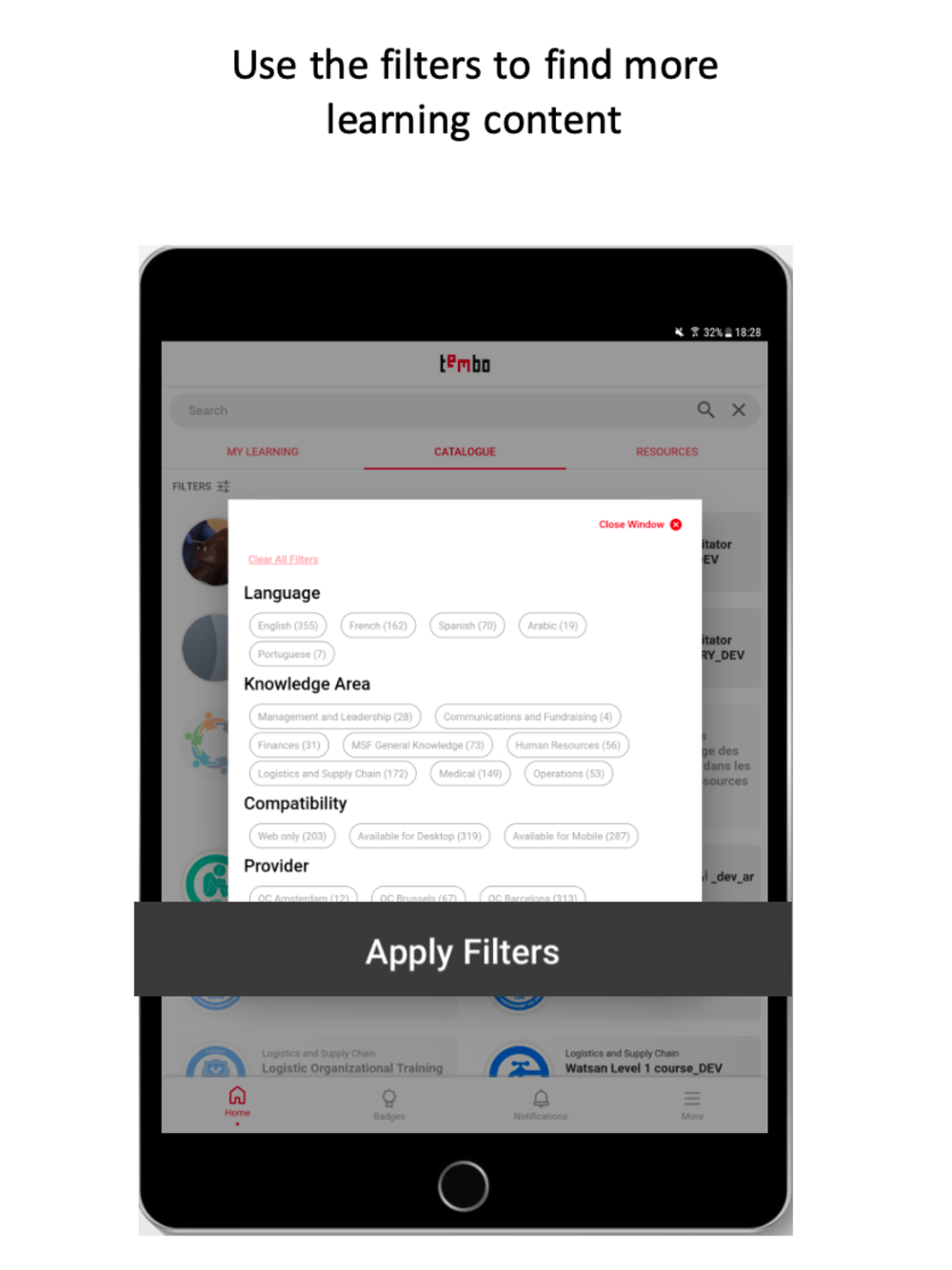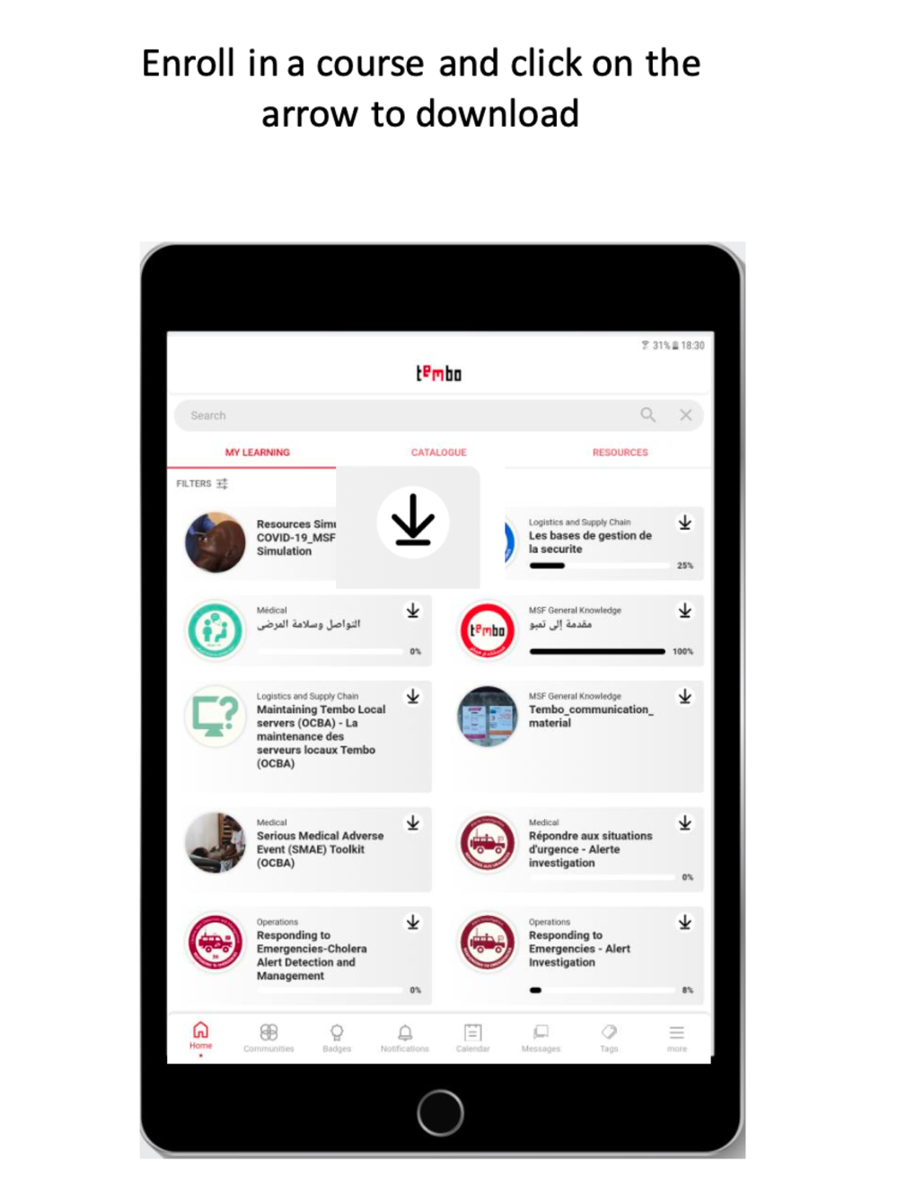 In MSF Tembo you will find different types of learning material such as courses, resources, forums, etc. In Tembo you will also receive certifications related to the completion of learning objectives.