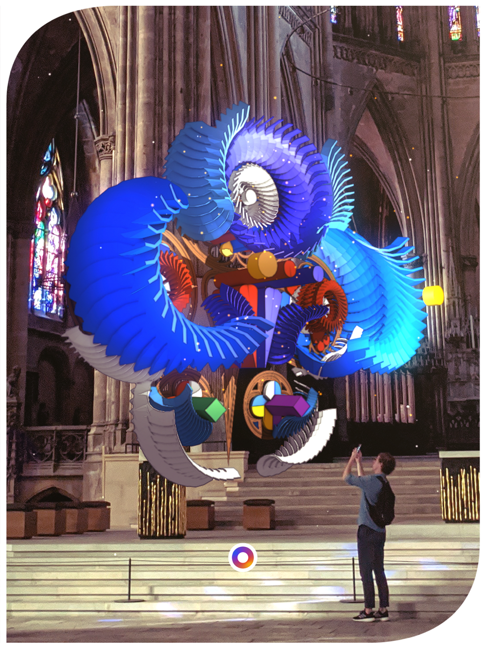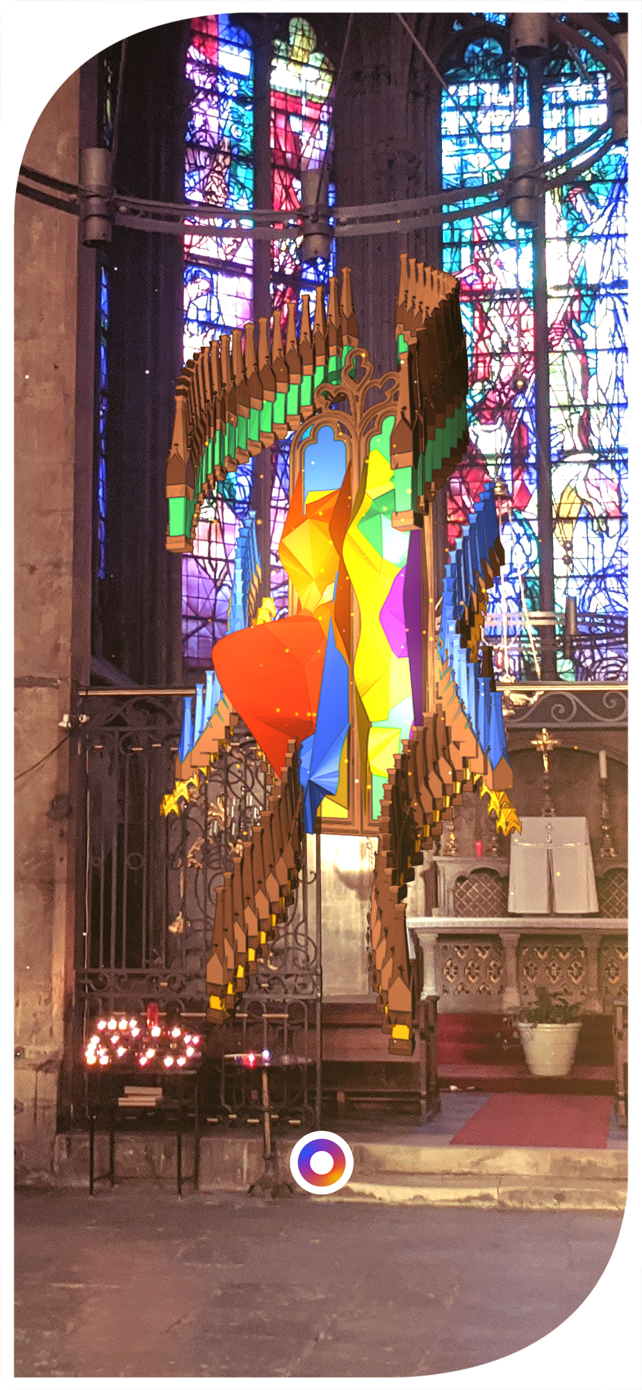 Go to the Saint-Etienne Cathedral in Metz to scan its stained glass windows and discover a series of Morphoses - animated and interactive augmented reality sculptures -.