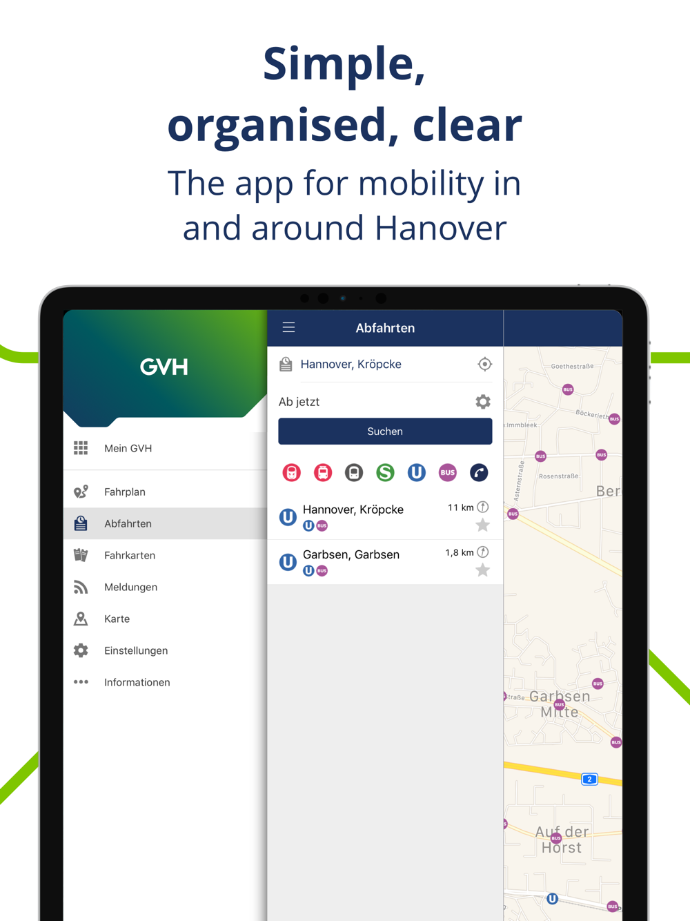 Travel smarter within the entire GVH area: Our user-friendly app provides you with your personal ticket machine at all times. Individual travel information and current announcements are included.