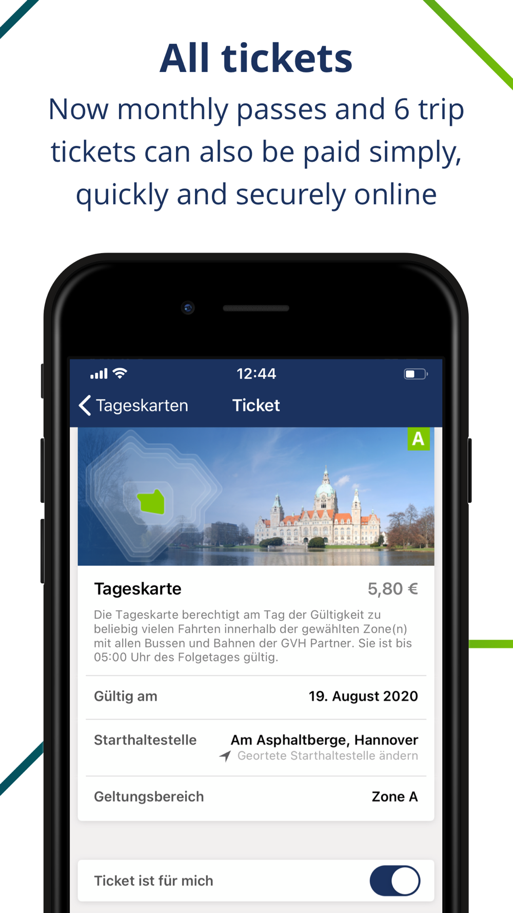 One-way, day and monthly tickets - the entire GVH ticket selection is available to you at any time.