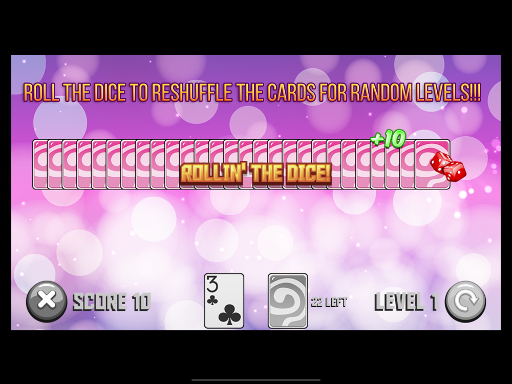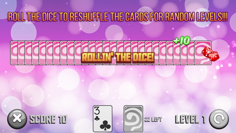 The game doesn't stop there because we've added dozens of adventurous levels to make this more than just about triple peaks. There's even randomly generated levels if you "shuffle the deck" by clearing the dice. Rockets can be aimed to clear large amounts of the board. Dynamite can help you clear out a whole part of the board. All these combine for a lot of challenging and fun gameplay.