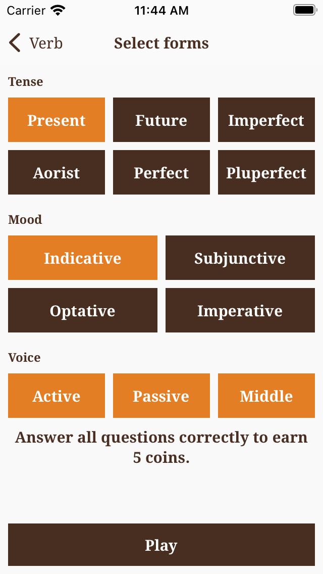Hoi Polloi Logoi helps students of Ancient Greek master verb forms. Parse verbs and produce forms to earn coins. Collect enough coins to unlock mythical monsters! Customize the game by choosing tenses, voices, and moods, and the presence or absence of accents. The game increases in difficulty as the player’s skills improve.