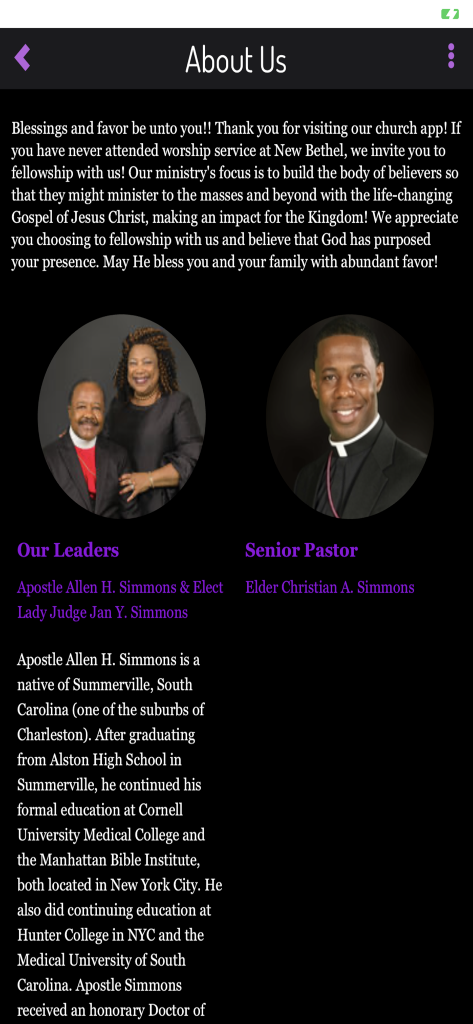 New Bethel Sounds of Praise Pentecostal Fellowship Ministries is the Kingdom Ministry where everybody is somebody, and It's All About Jesus! Stay connected with our brand new app, where you'll be able to find the most up to date information and links to our live services with messages from our leaders, Apostle Allen H. Simmons, (Chief Apostle) and Pastor Christian Simmons (Senior Pastor). You can also give online and preview upcoming service events and conferences. Don't miss a moment of what's happening in the City of Bethel!!
