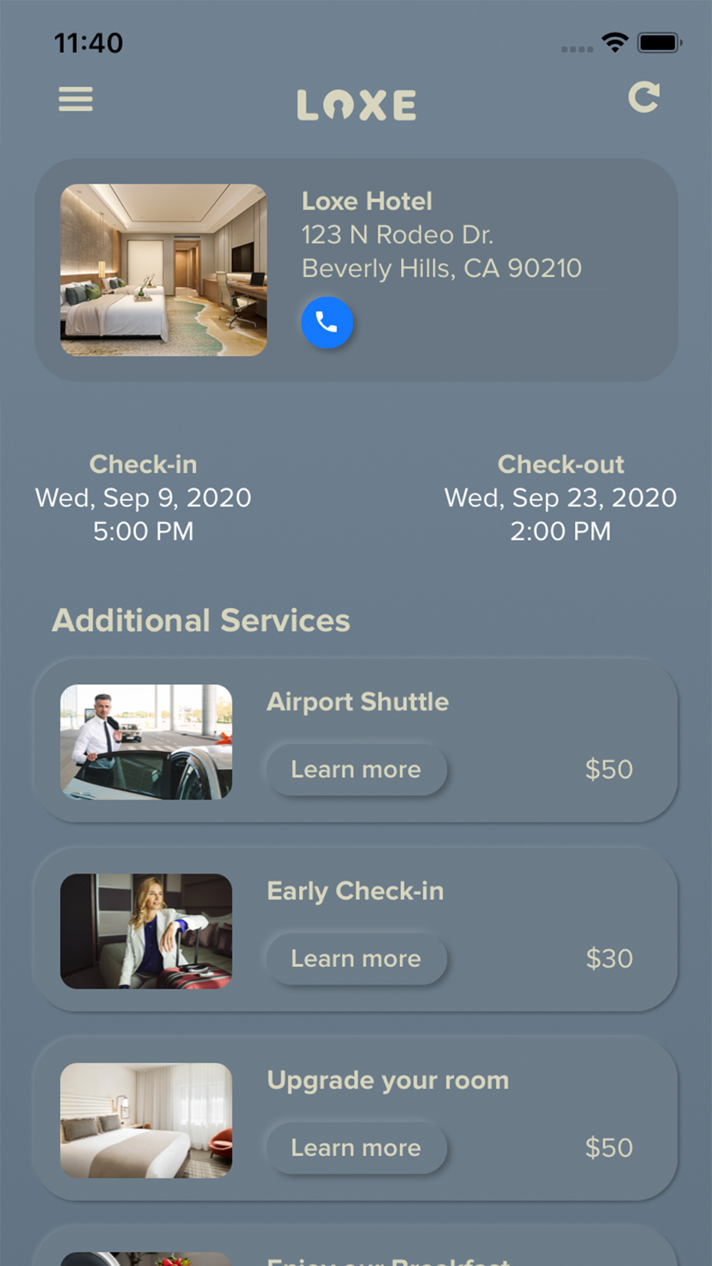 - Contact the hotel from the app