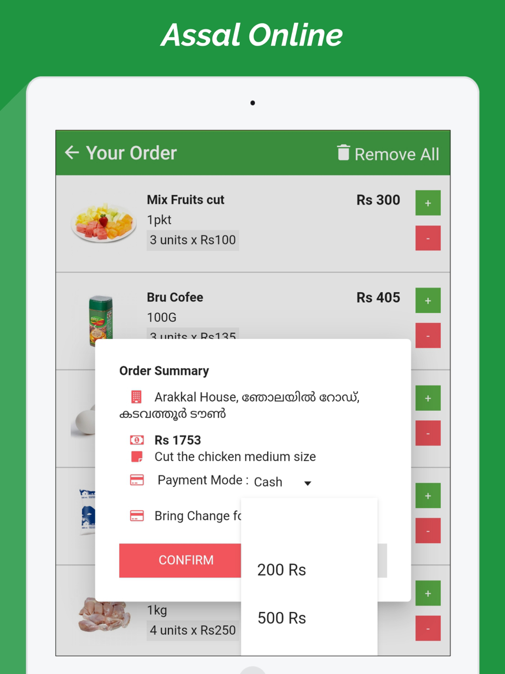 assal mobile application allows its users to buy and order commodities like daily grocery and supermarket items online with home delivery Facility.