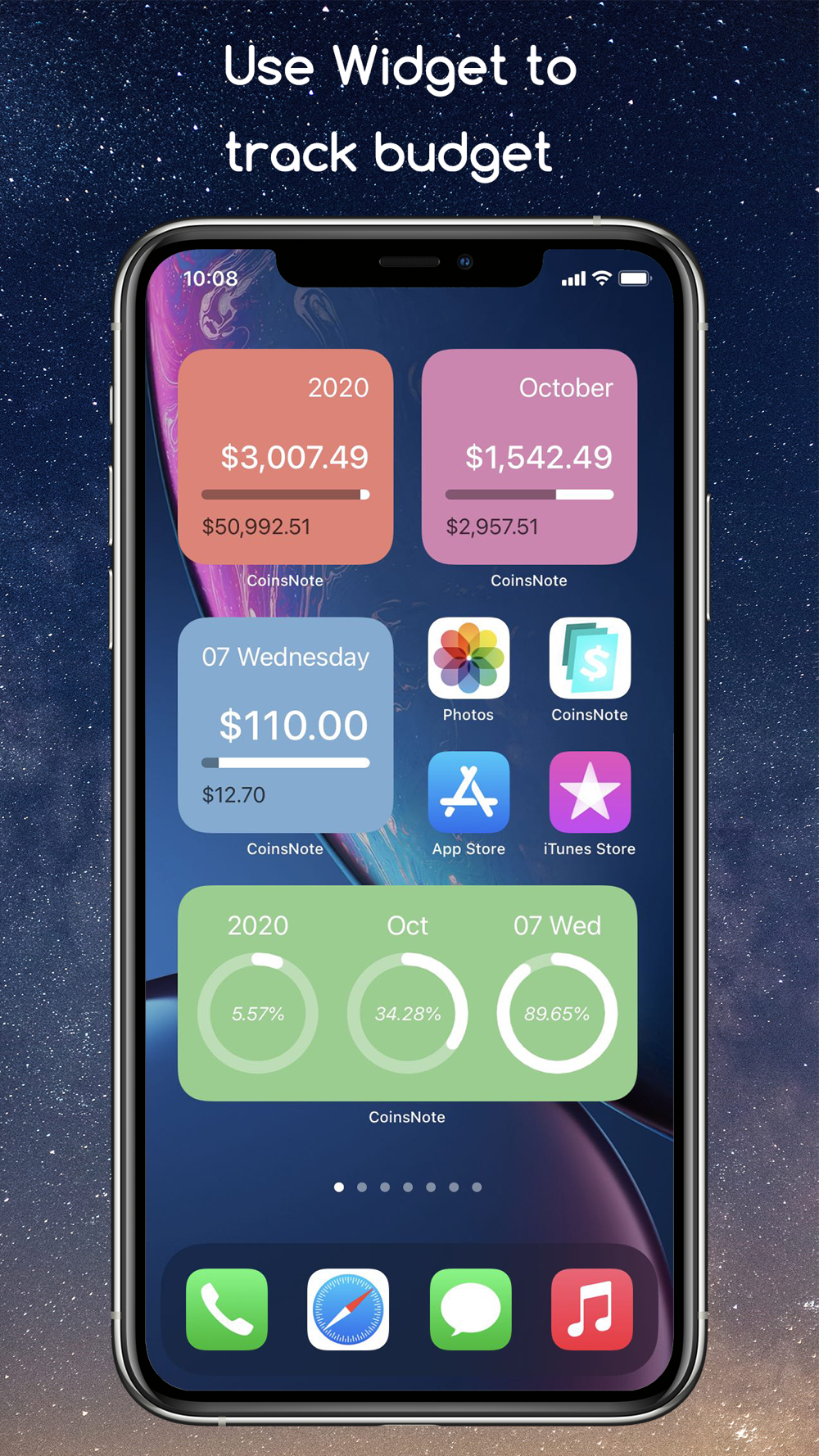 No need to enter the app, you can track your expenditure and budget information at any time through the Widget.