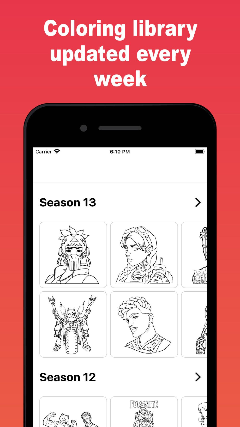 Colortnite includes a lot of beautiful images. The most important thing is that the drawing turns into a fun and engaging process that will bring a lot of joy and discovery. You can paint, draw, or doodle your favorite characters. Coloring, doodling, and drawing have never been easier and more fun, so let's start now with your favorite fairy tales. It is the time to have fun with the wonderful coloring game. Just relax and enjoy!