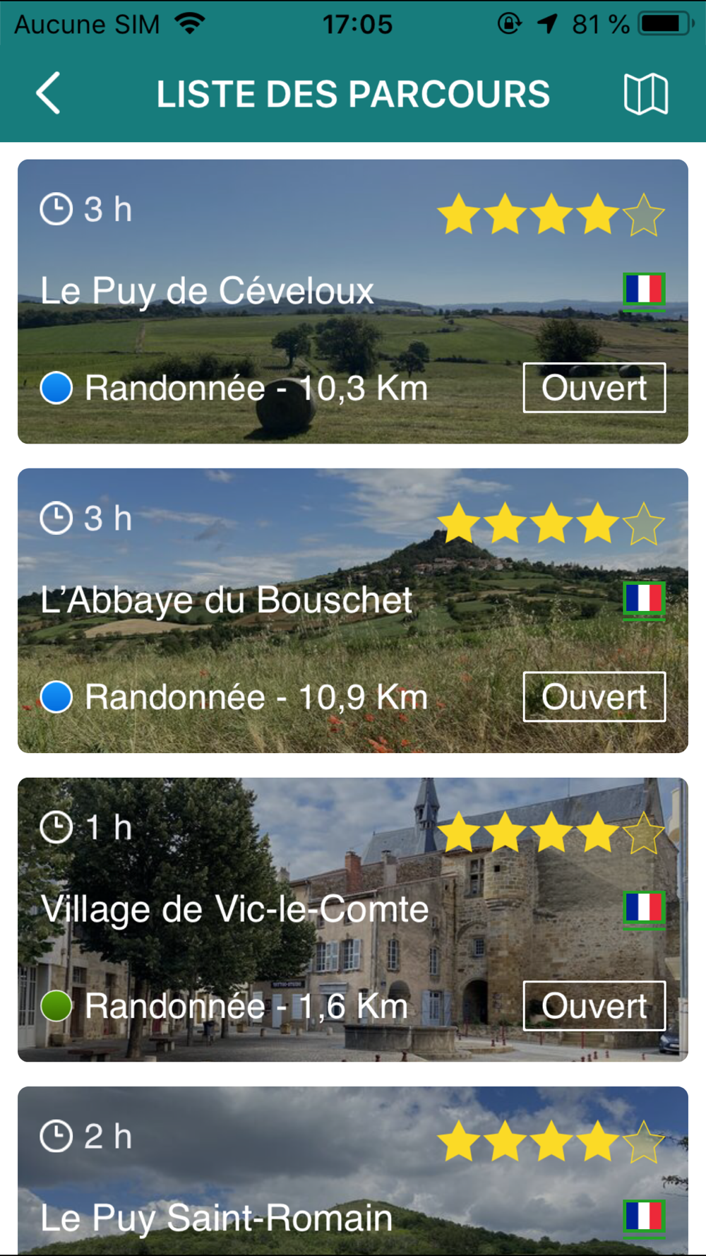 Les circuits qui vous sont proposés ont été sélectionnés et travaillés par des experts de la destination – l’Office de Tourisme Mond’Arverne – afin de vous fournir la meilleure expérience possible ! Que vous soyez à la recherche d’une balade facile d’accès, de courte durée et sans dénivelé, ou bien randonneurs aguerris et/ou en quête de challenge, vous trouverez votre bonheur sur cette application.