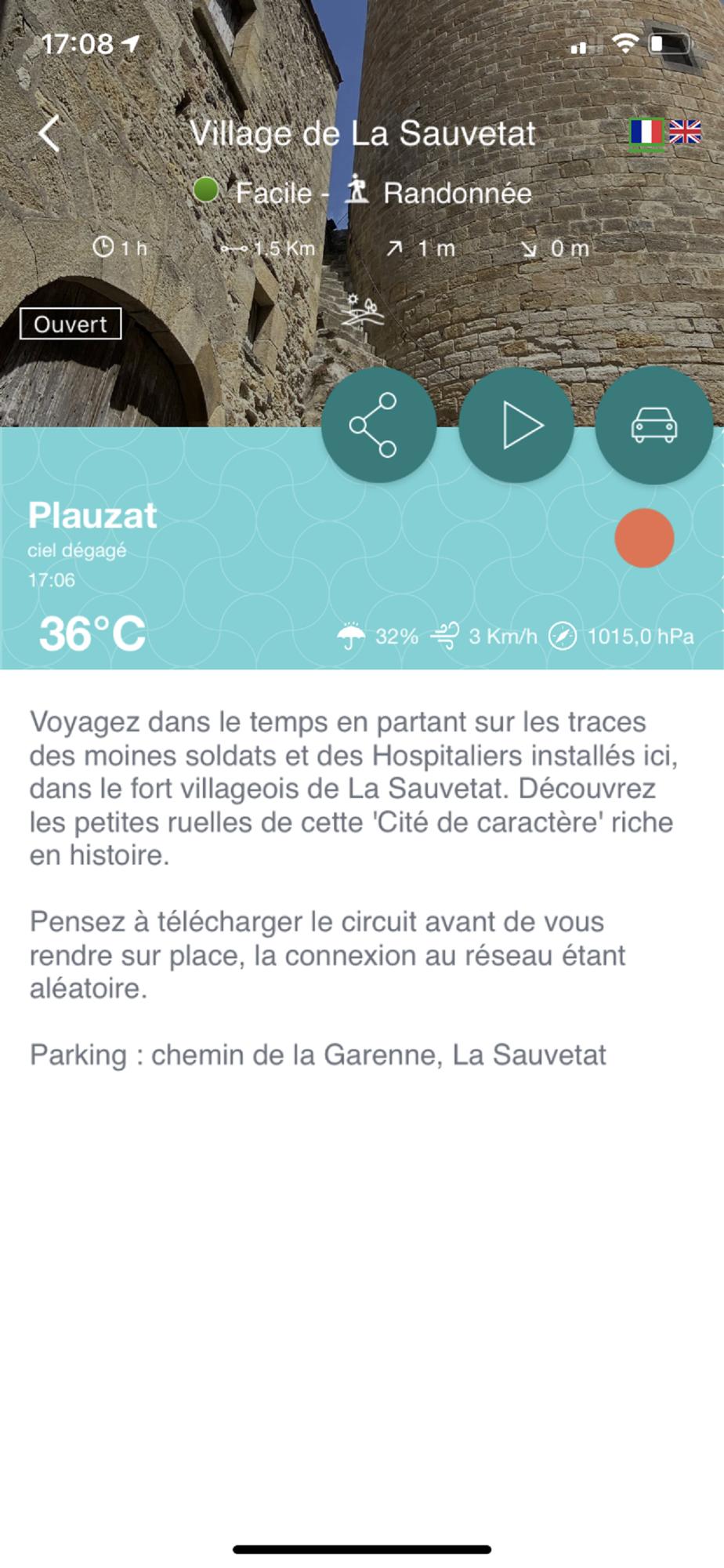 Pas besoin d’avoir internet pendant votre randonnée ! L’application fonctionne même sans connexion, il vous suffit de télécharger le parcours qui vous intéresse avant de partir.